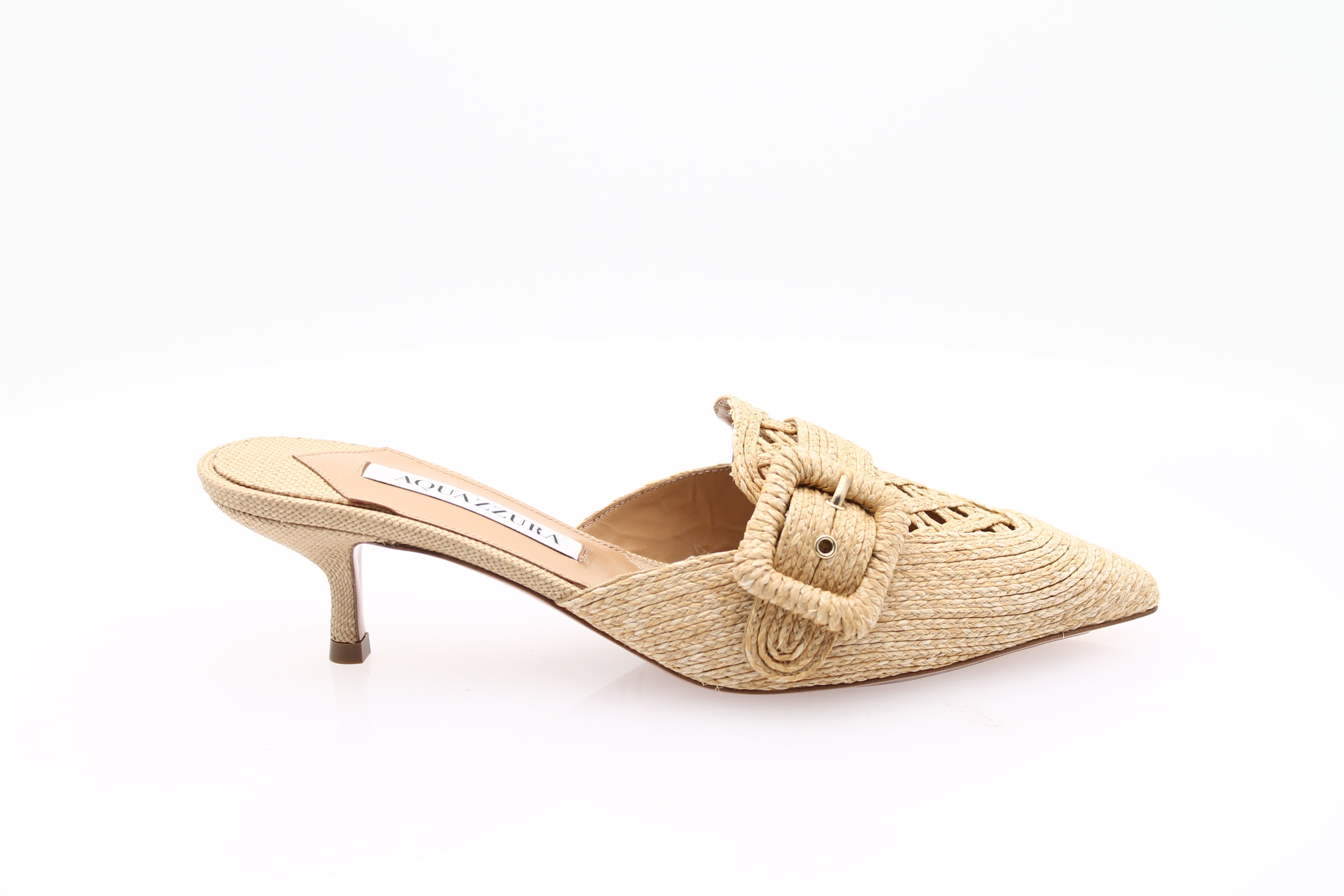 Les mules Visconti 50 Mule - Beige d'Aquazzura allient un style décontracté à une sophistication moderne. Conçues en raphia de qualité, elles se distinguent par leur bout pointu et leur conception slip-on, offrant ainsi une solution élégante et pratique pour parfaire vos tenues.
