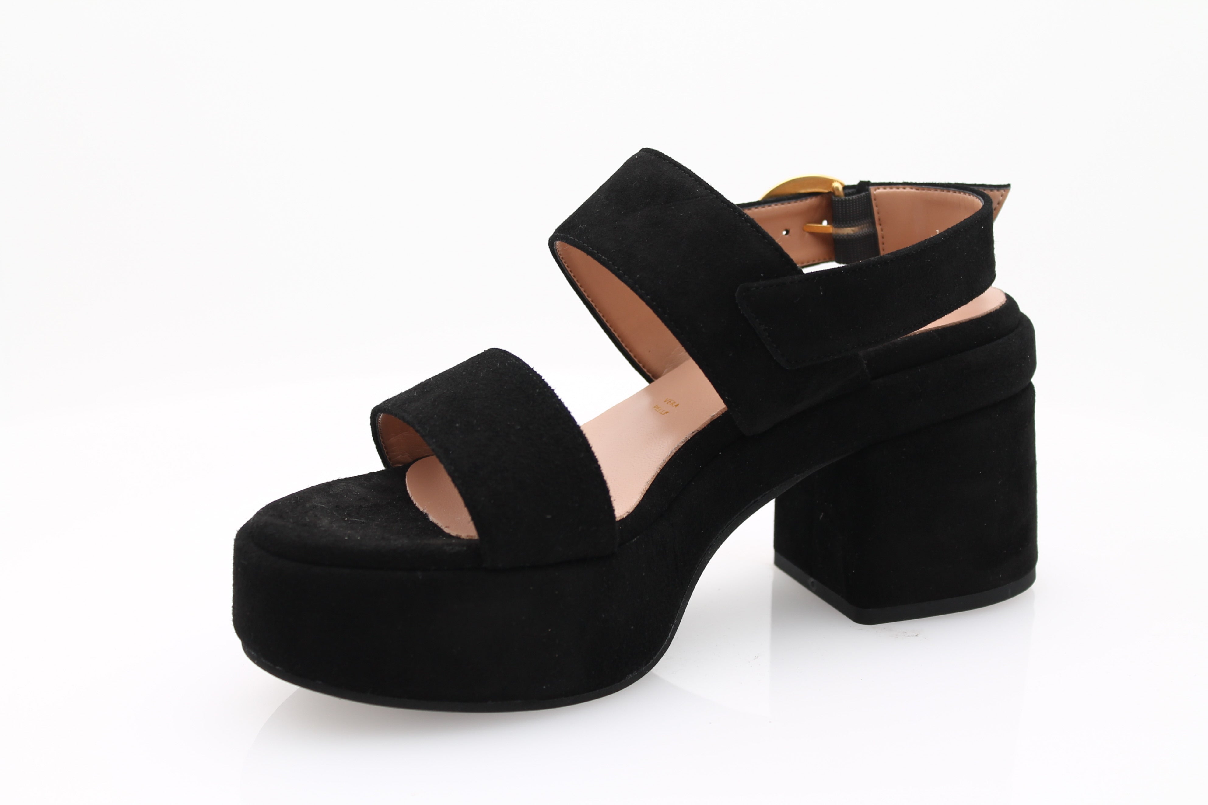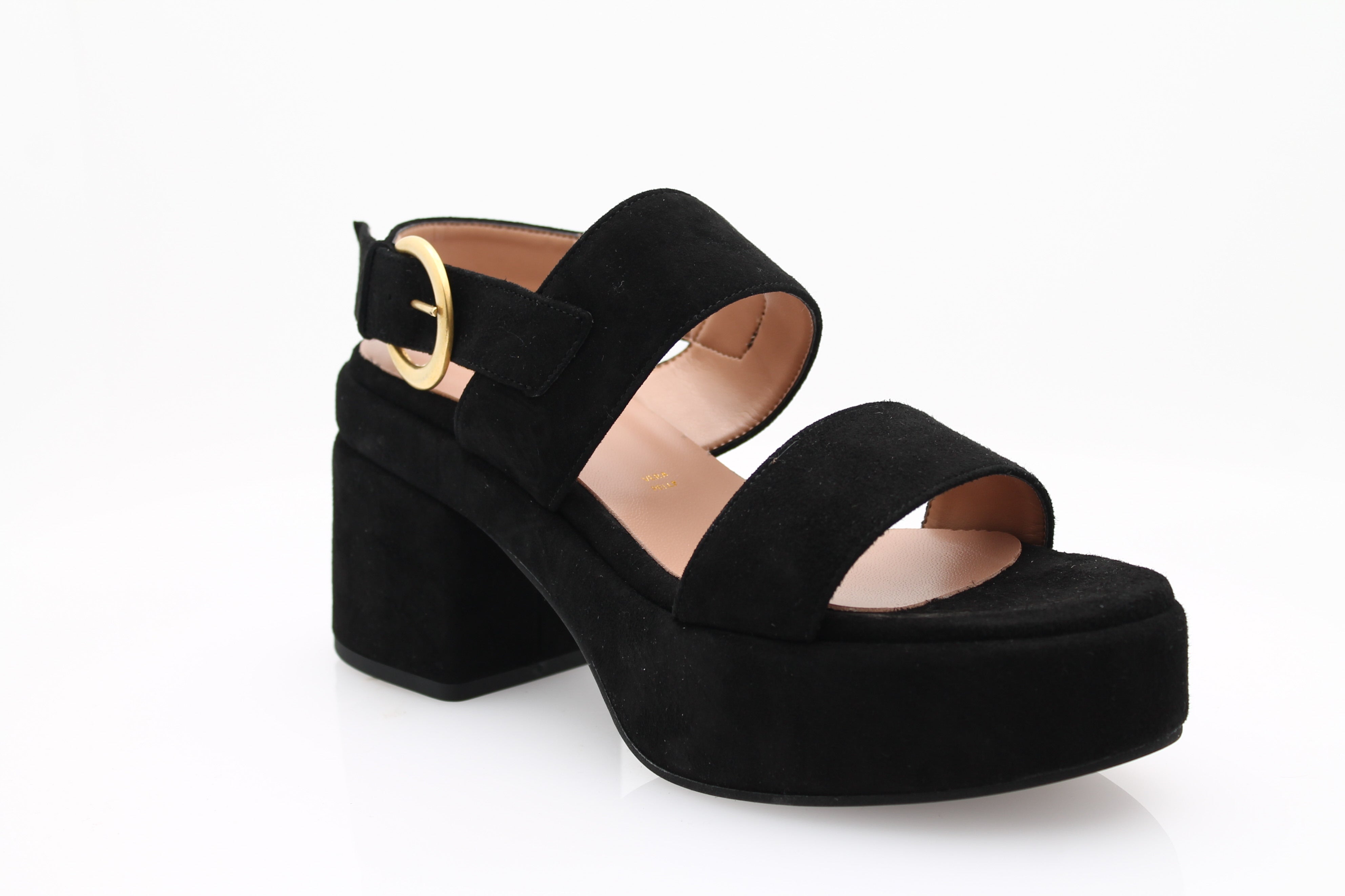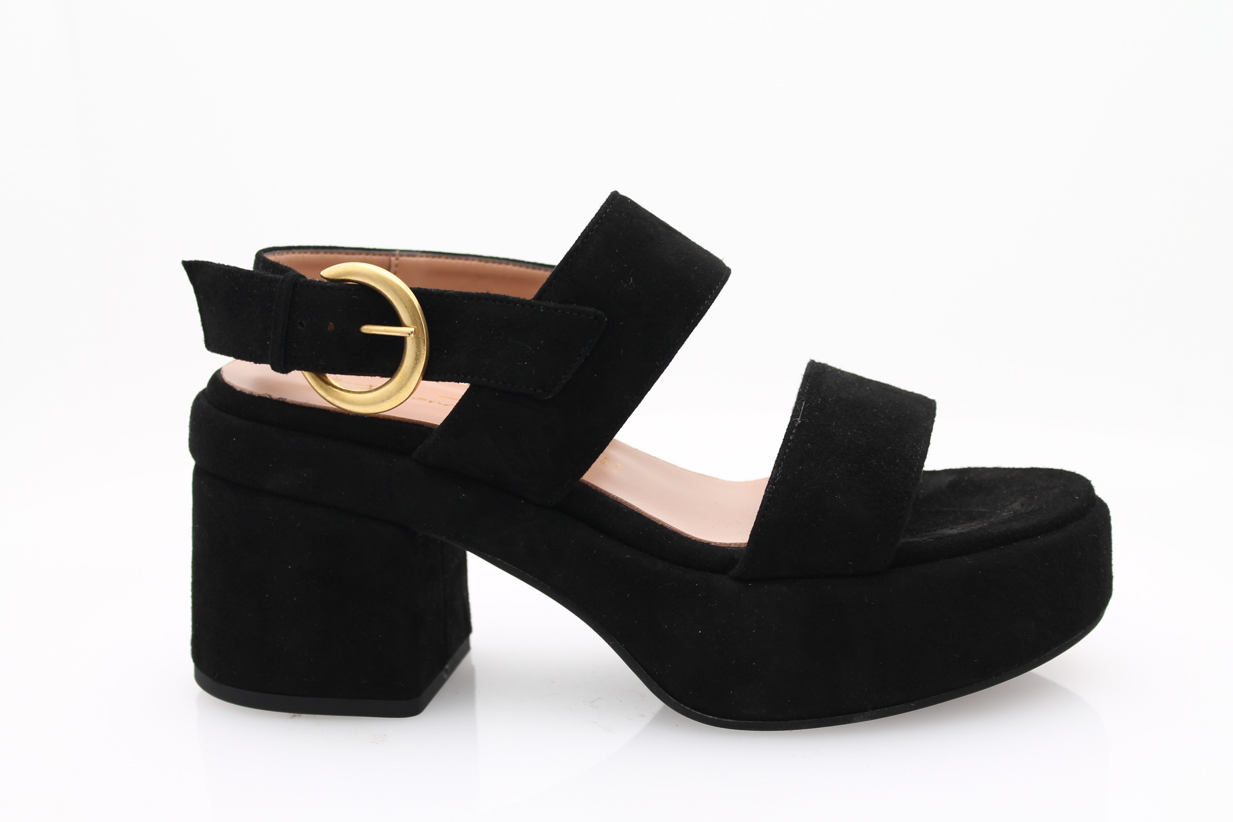 Élevez votre look avec style grâce à la chaussure à plateforme BIANCA DI en cuir suède noir.