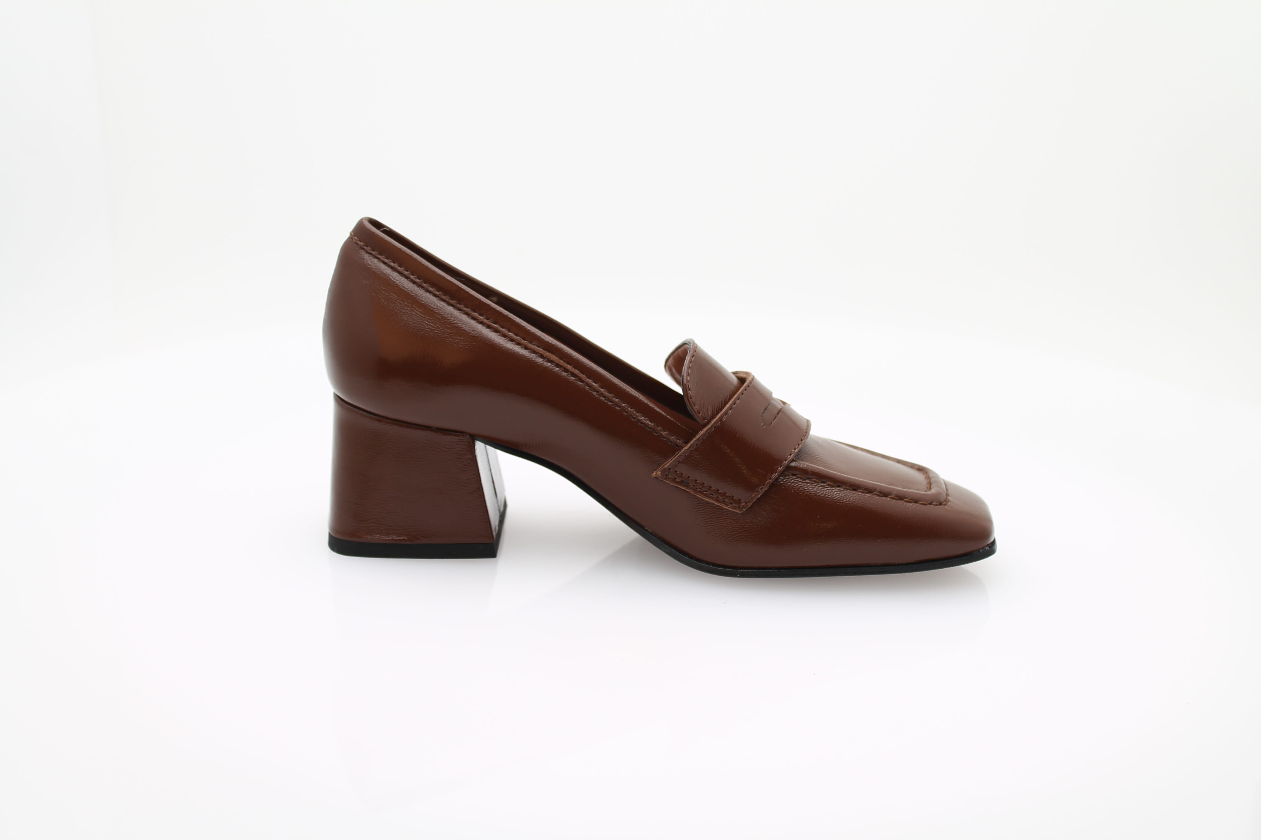 Apportez une touche d’élégance à votre tenue avec ces mocassins en cuir verni brun.