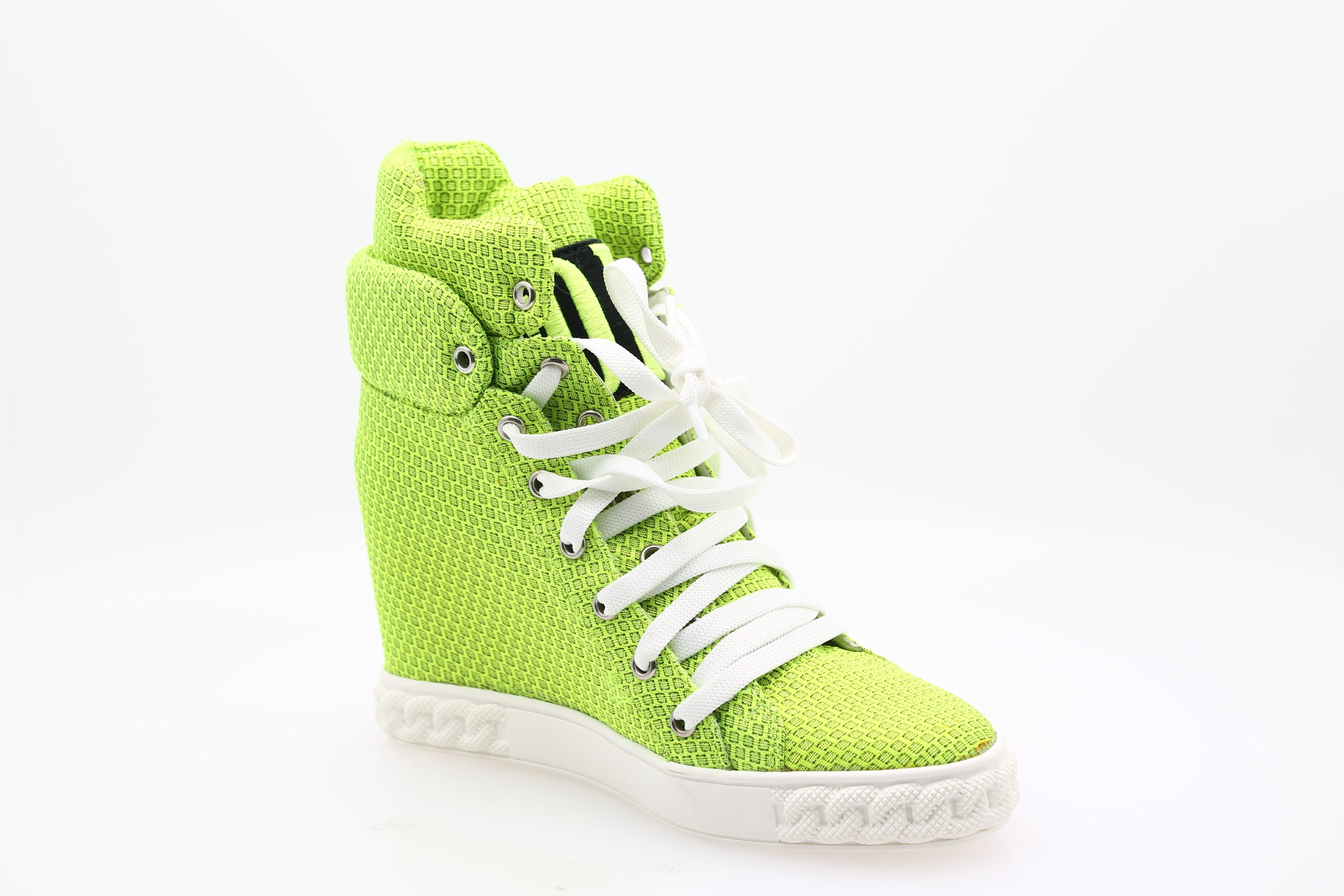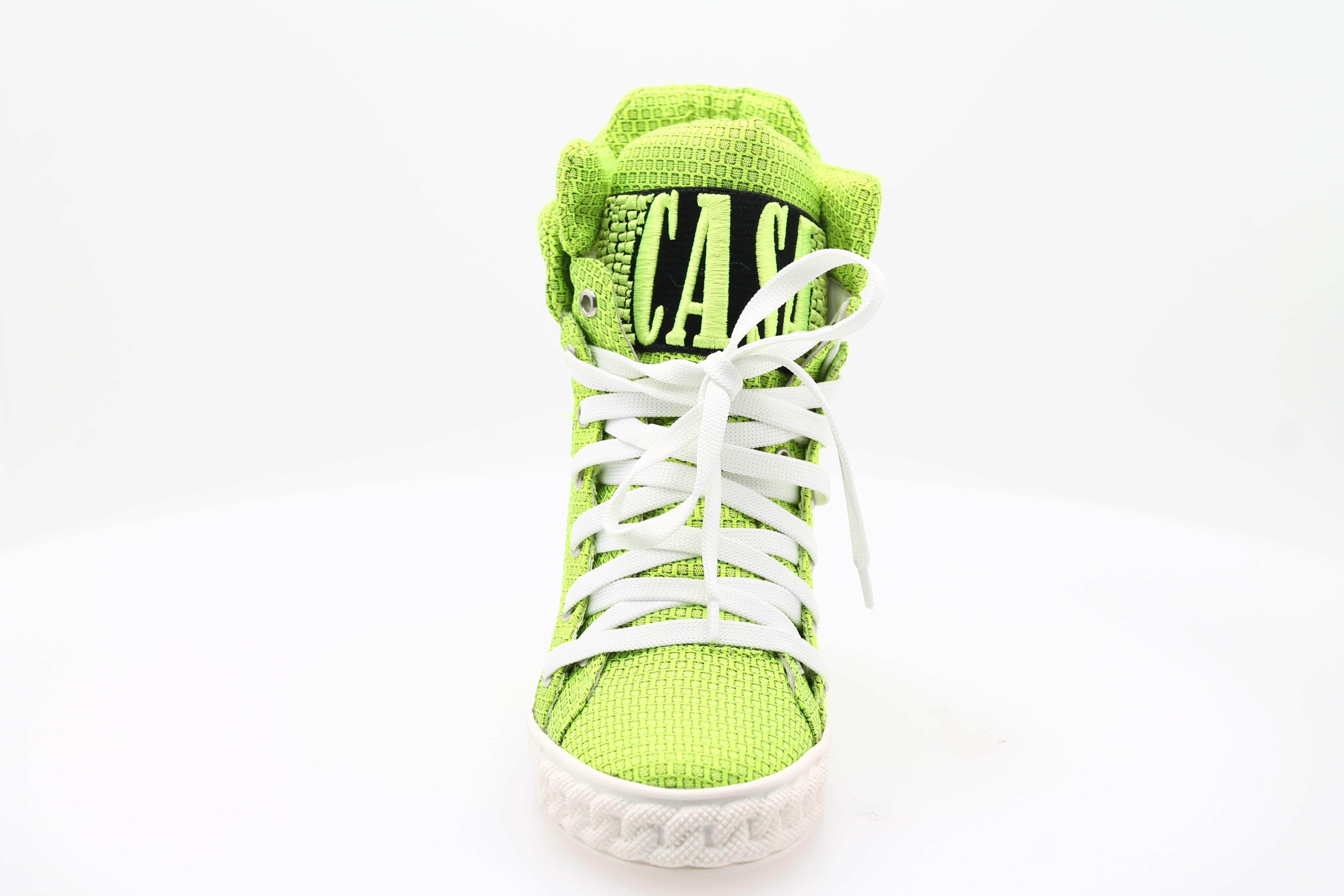 La sneaker compensée Crossfit de Casadei bouscule les codes avec un design sport-chic ultra moderne. Son textile structuré vert fluo capte immédiatement l’attention, insufflant une énergie vibrante à chacune de vos tenues. Rehaussée d’un laçage blanc contrastant et d’un col rembourré, cette chaussure montante mise sur l’originalité sans compromettre l’élégance. Le détail signature ? Une semelle blanche graphique avec motif tressé intégré qui affirme son caractère unique.