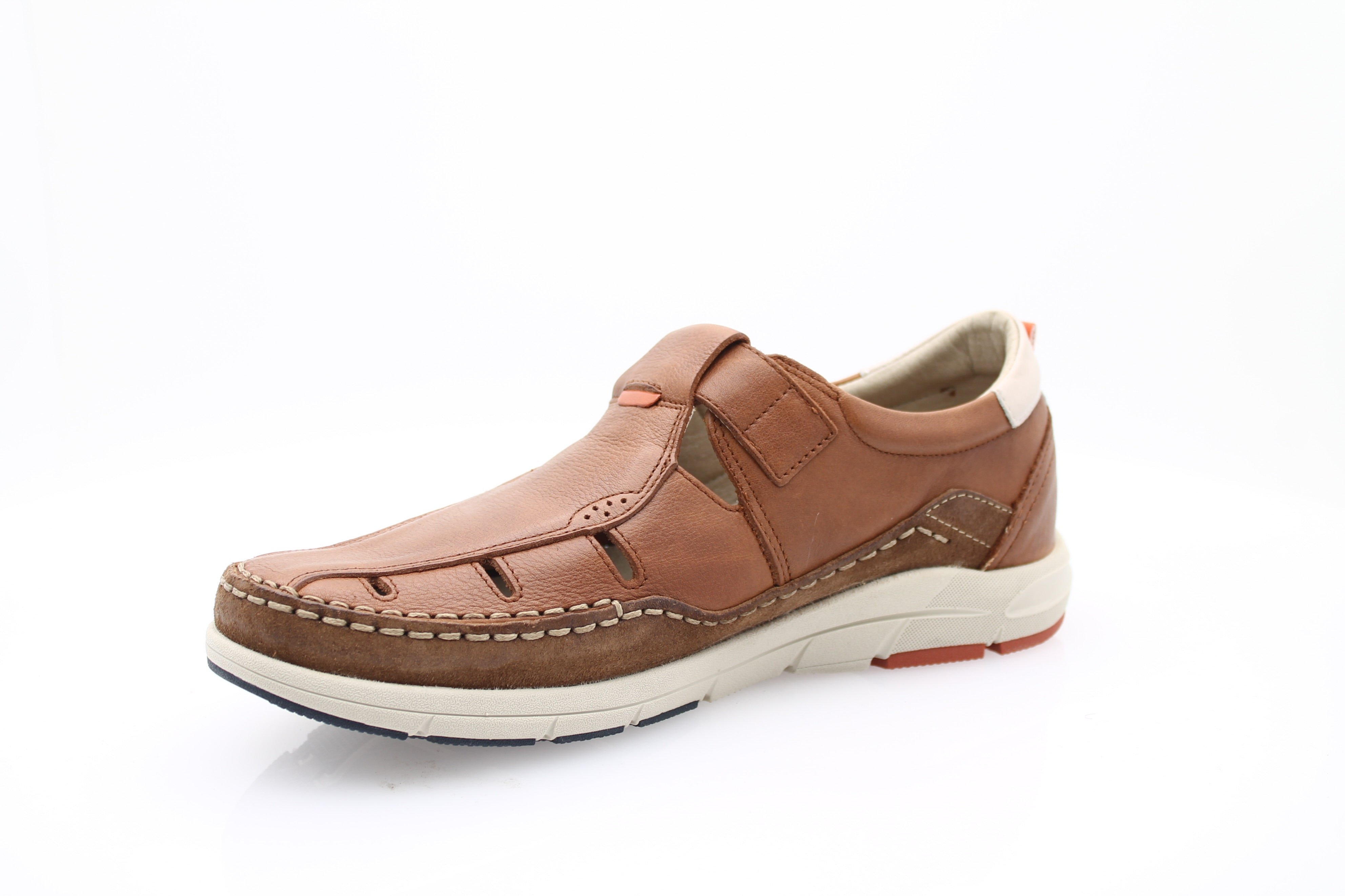 Des baskets ouvertes en cuir brun alliant confort et respirabilité