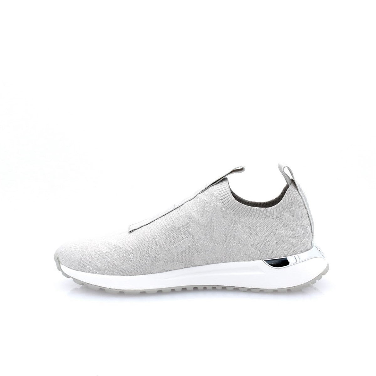 Les baskets basses pour femmes de MICHAEL KORS® sont faites en textile, avec un logo en relief en tissu gris aluminium. La languette d'enfilage au talon et la semelle extérieure plate en caoutchouc offrent confort et adhérence, tandis que la couleur gris ajoute une touche élégante à votre style.
