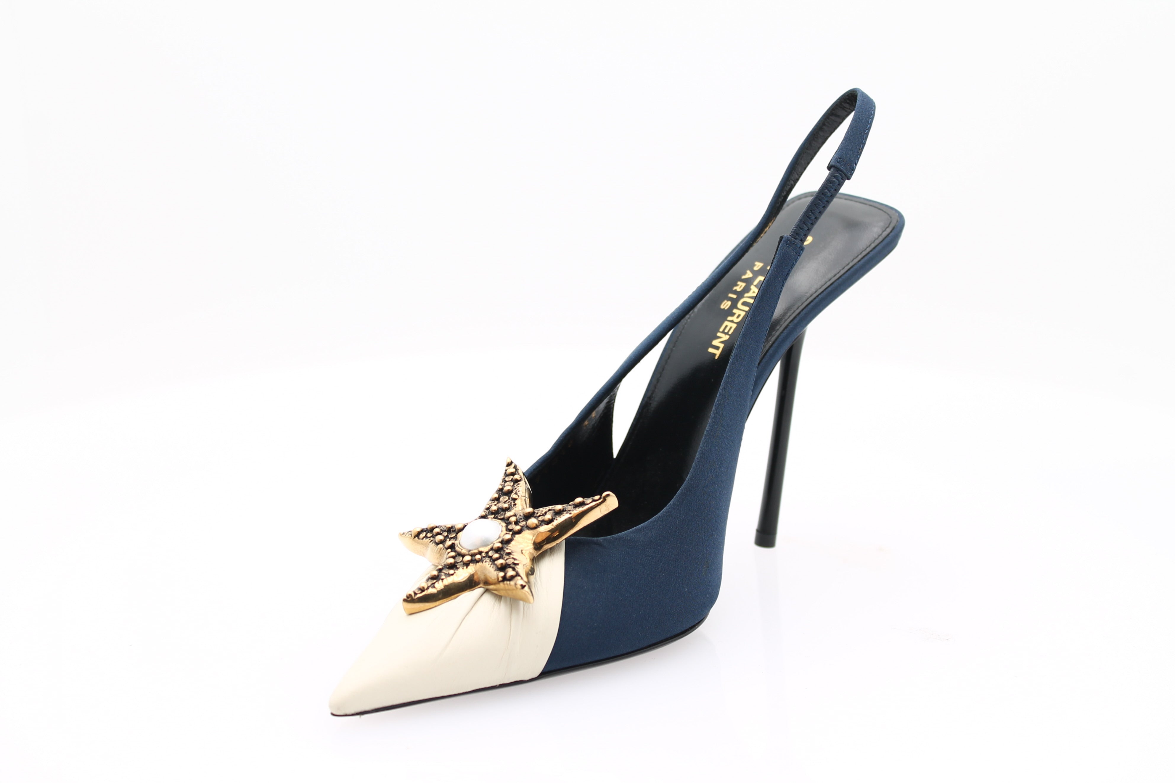 SAINT LAURENT – Ricqua 115 Slingback – Blue/Pearl