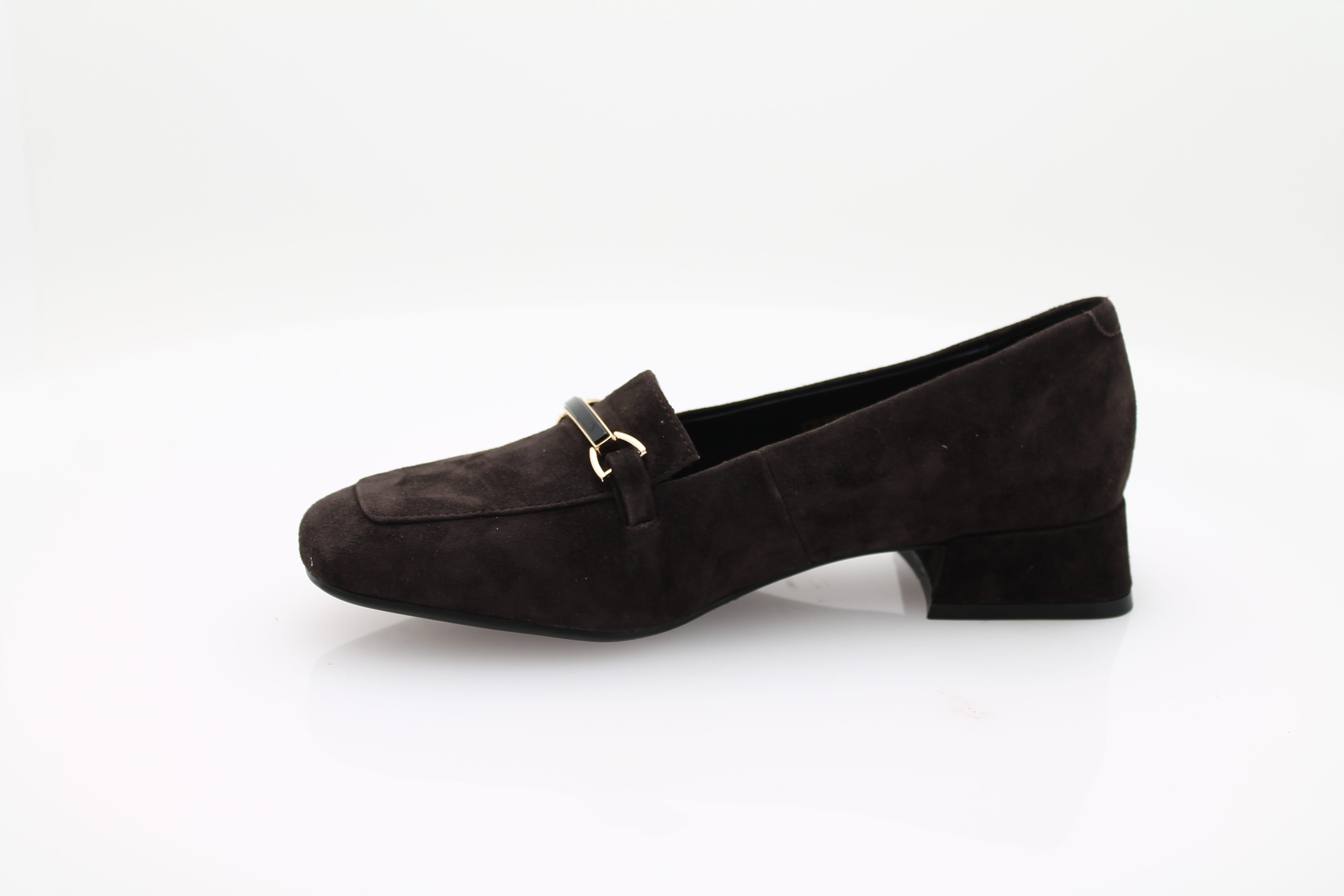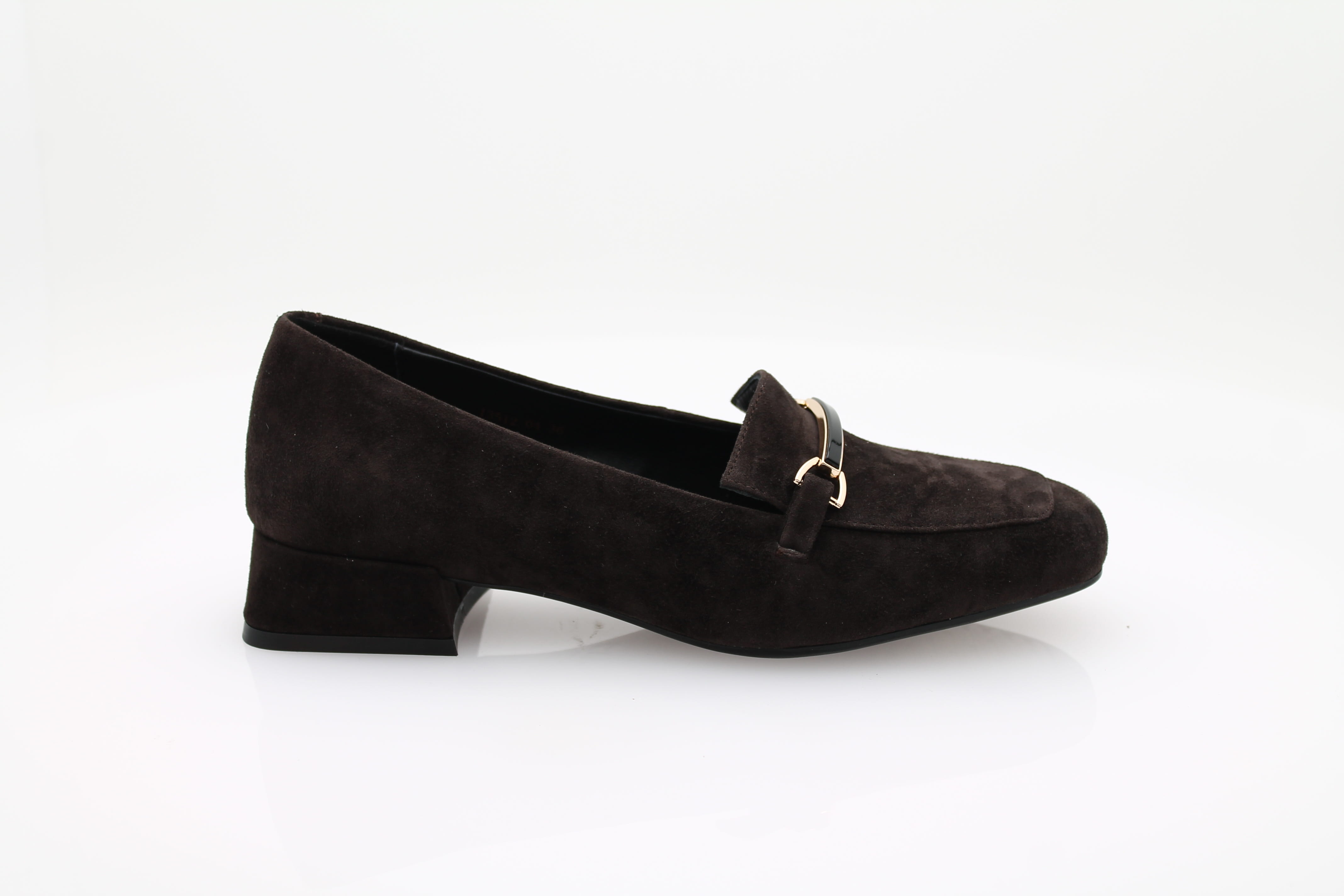 Les mocassins Larissa combinent élégance et confort avec leur design raffiné en daim et cuir de qualité. La couleur brun chaleureuse et le petit talon offrent une silhouette féminine et confortable, idéale pour une journée de travail ou une sortie décontractée. Le détail doré à l'avant ajoute une touche de sophistication et de luxe, rehaussant le modèle d'un éclat subtil.