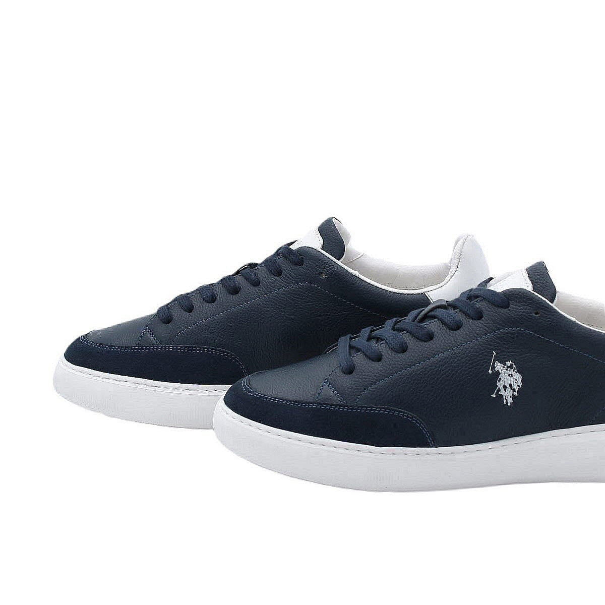Les chaussures de sport décontracté U.S. POLO ASSN. revisitent l’esprit du tennis avec une ligne épurée et des finitions soignées. Leur dessus en cuir bleu foncé est subtilement rehaussé d’empiècements blancs contrastants, pour une allure à la fois classique et moderne. Le célèbre logo Polo apporte la touche signature emblématique de la marque.