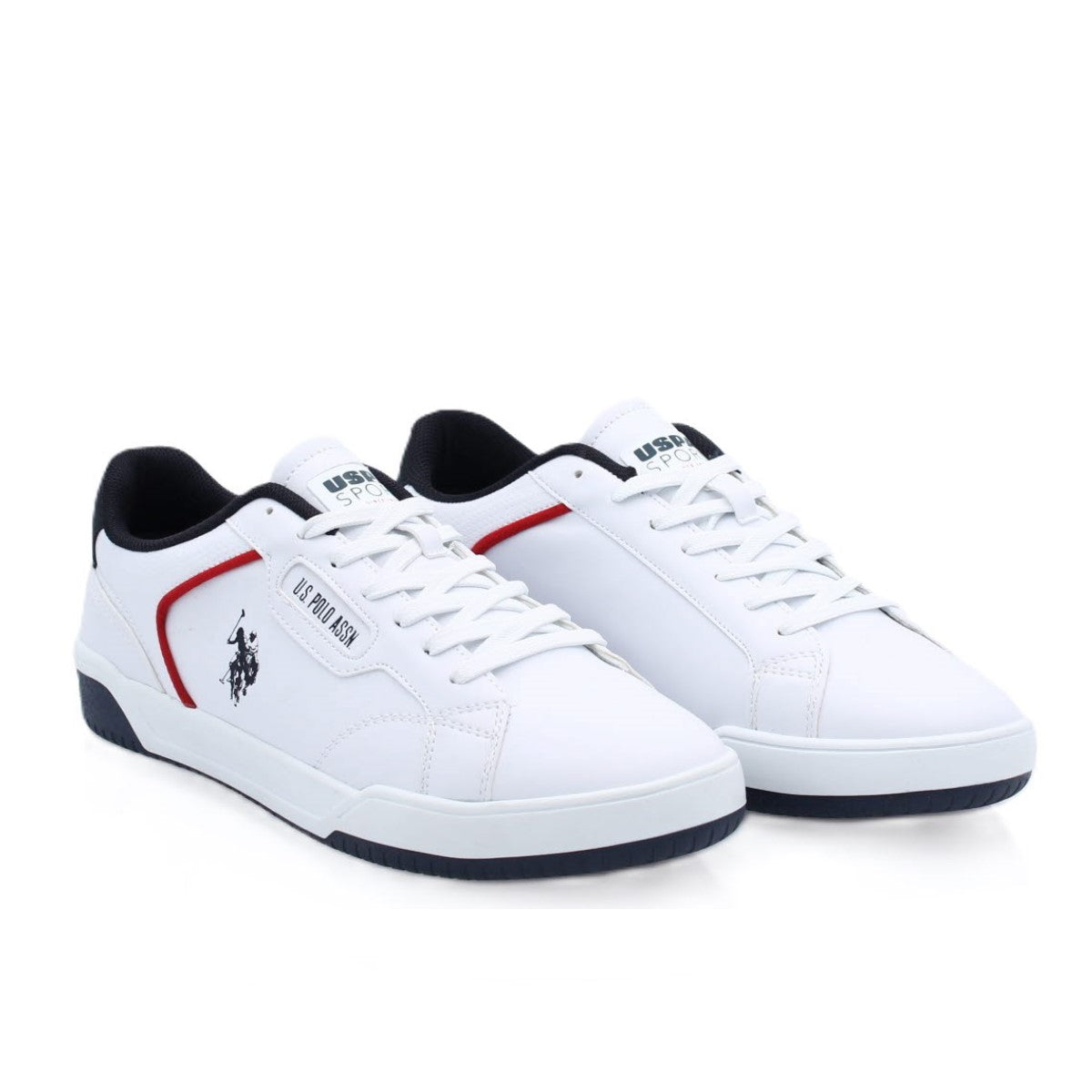 Les chaussures de sport décontracté U.S. POLO ASSN. Planck 2PR séduisent par leur ligne moderne et épurée. Leur dessus en matière synthétique blanche de haute qualité est subtilement rehaussé de touches de noir et de rouge pour une allure dynamique, signature de l’élégance sportive américaine. Le logo emblématique de la marque rappelle l’esprit authentique du polo.