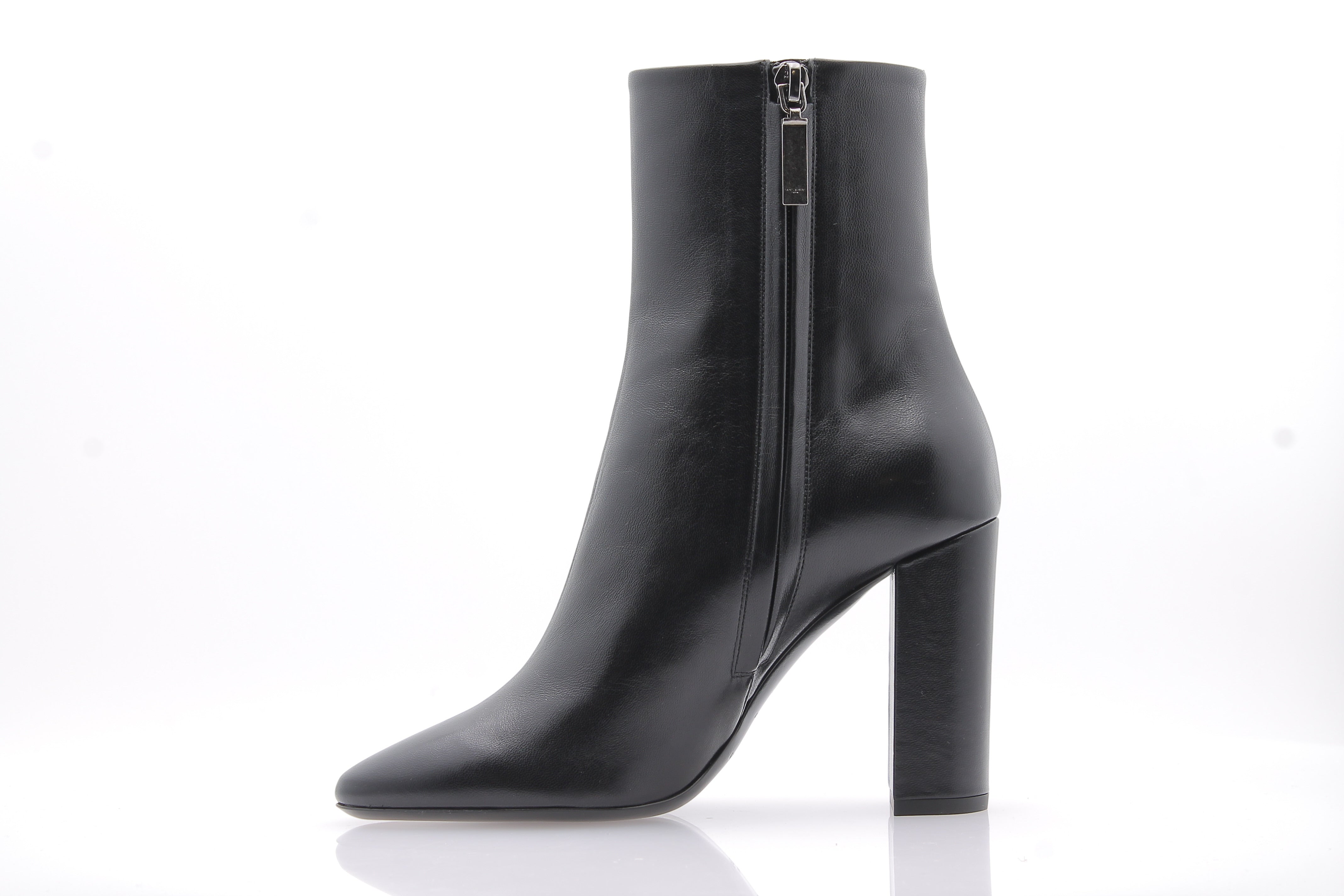 Avec la Lou 95 Zip Bottie, Saint Laurent propose une interprétation audacieuse de la bottine noire, alliant minimalisme épuré et identité forte. Confectionnée en cuir nappa d’agneau, sa ligne affûtée, son bout pointu et son talon bloc de 9,5 cm sculptent la silhouette avec une assurance saisissante. L’emblématique logo Cassandre ton sur ton s’invite subtilement à la base du talon, comme une signature discrète mais reconnaissable entre toutes.