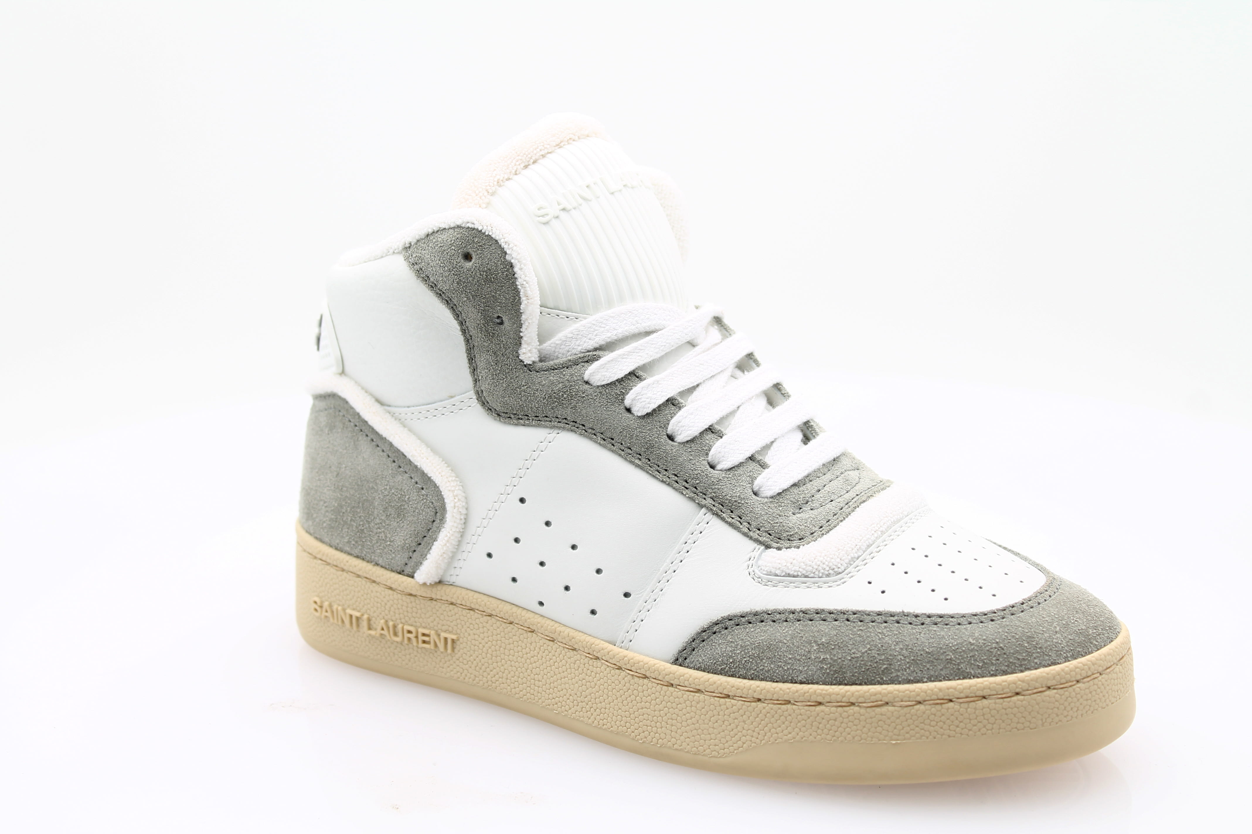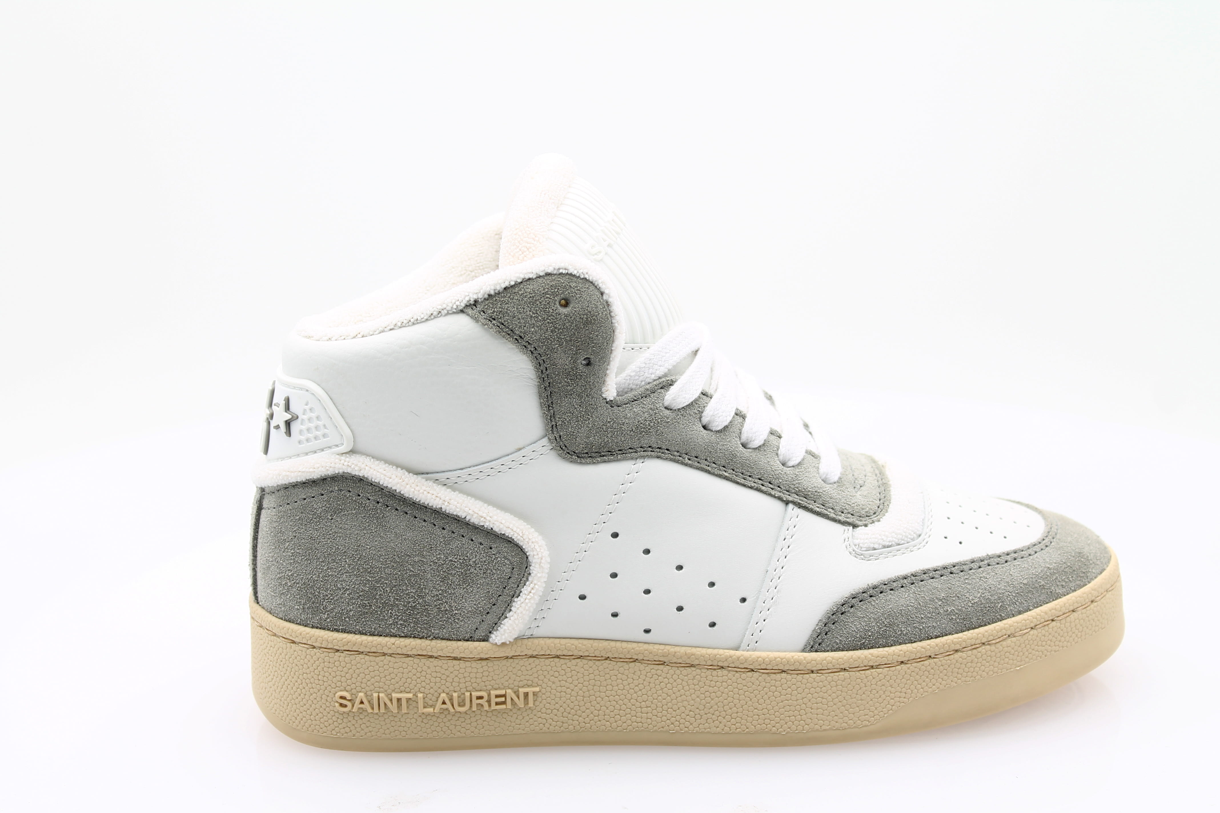 Les sneakers SL80 d’Yves Saint Laurent réinventent la basket haute avec un design à la fois sportif et sophistiqué. Conçues en cuir premium, elles associent subtilement le gris et le blanc, offrant une allure moderne et polyvalente qui s’adapte à toutes les occasions.