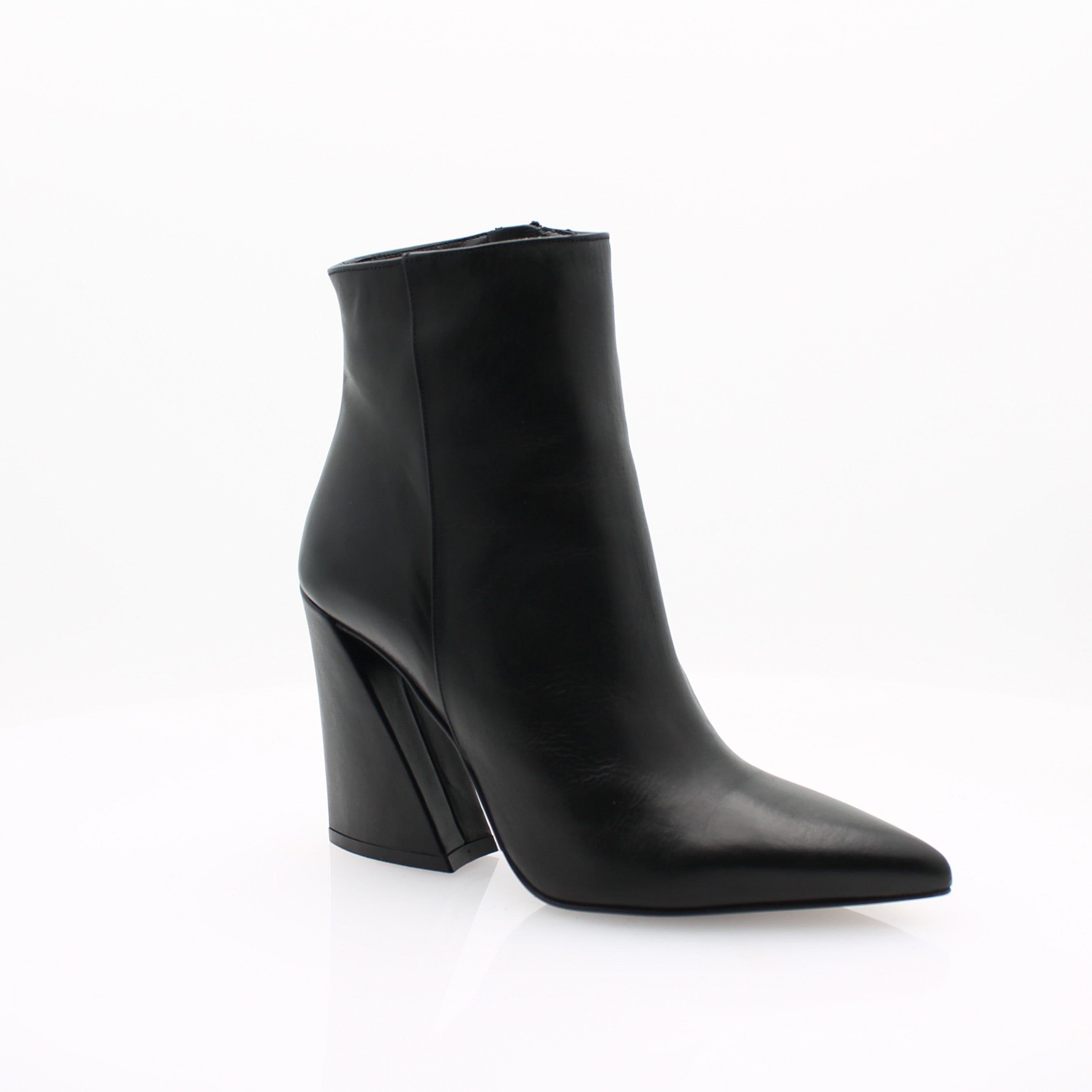 Ces bottines Albano en cuir lisse noir affichent une silhouette résolument contemporaine. Leur bout pointu confère une touche de sophistication, tandis que leur talon géométrique de 10 cm affirme un style unique et audacieux.
