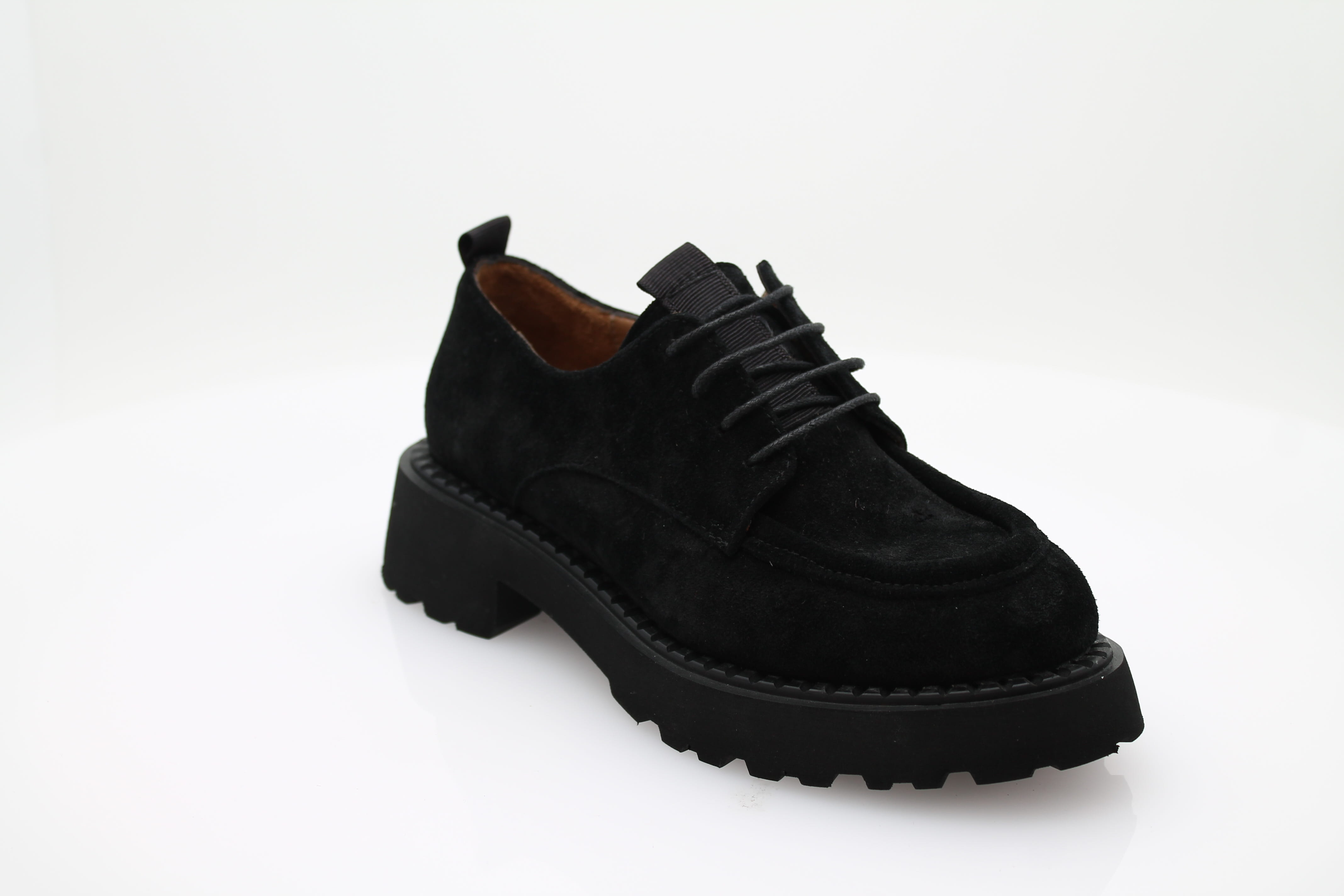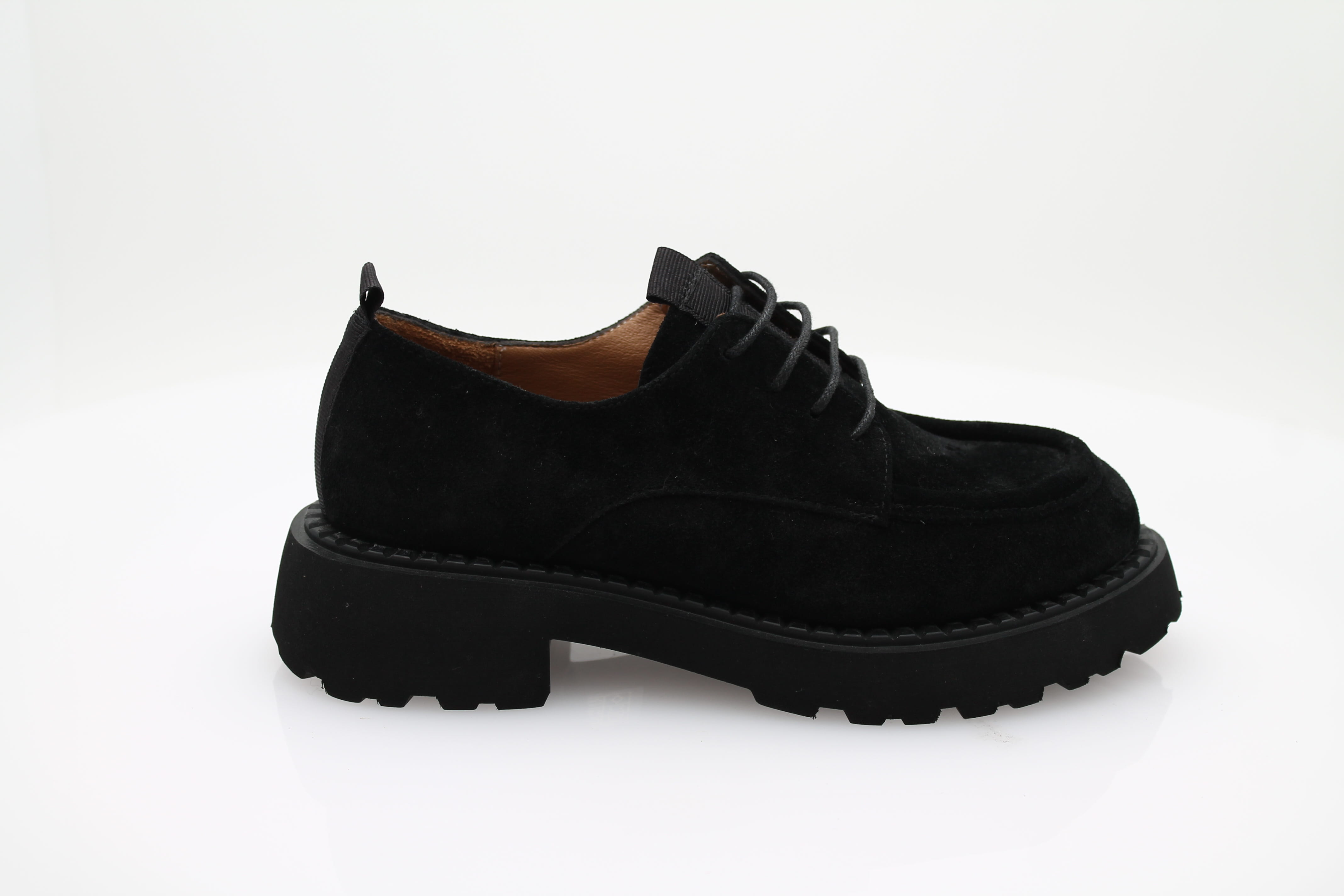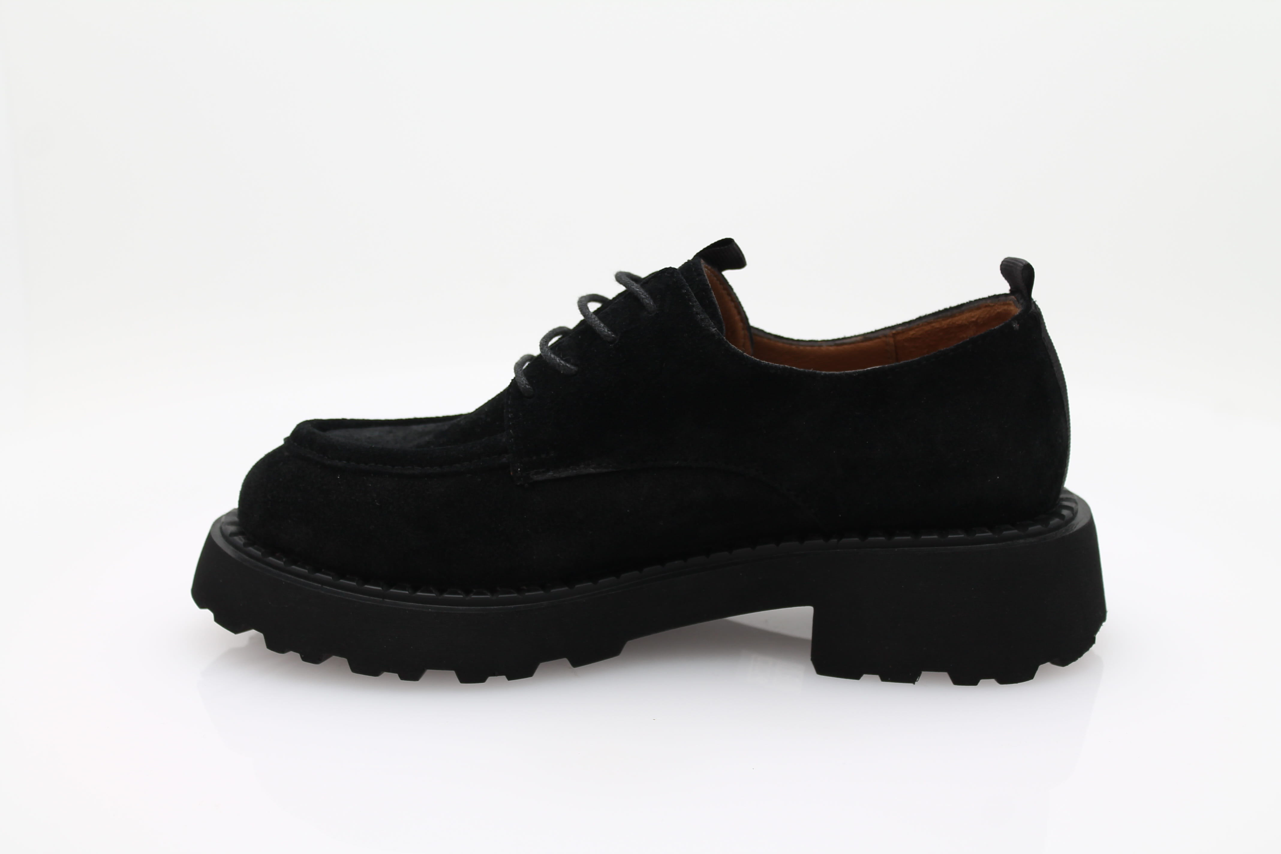 Ces derbies épaisses en daim noir incarnent un style chic et robuste.