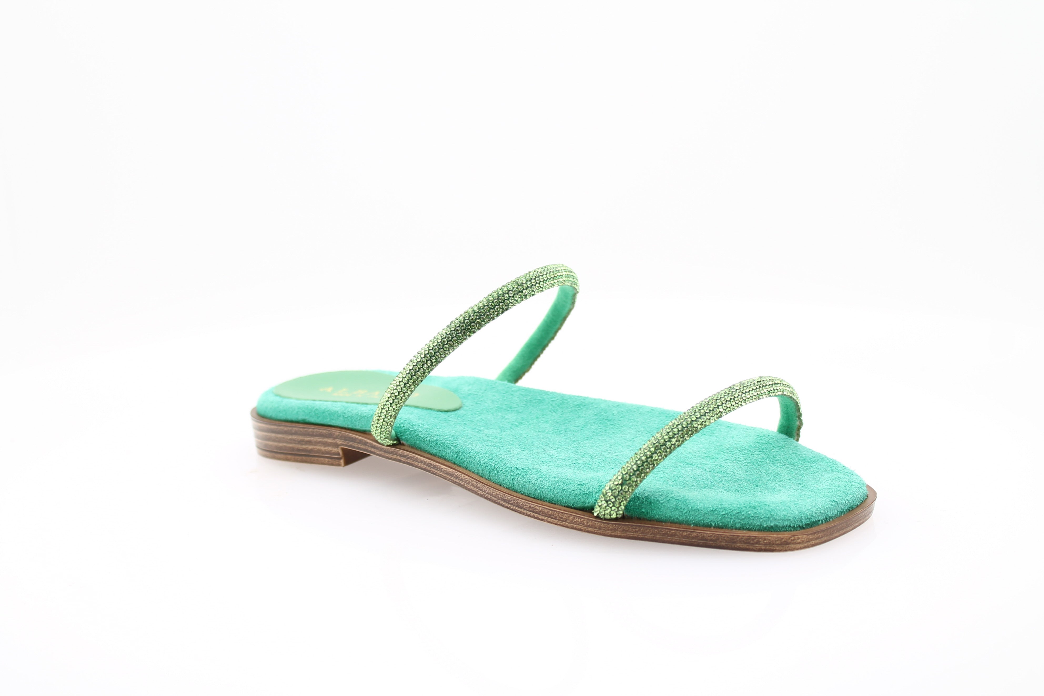 Les mules plates en daim Albano incarnent à la perfection le mariage entre style et confort. Avec leur somptueuse couleur verte, elles apportent une touche d’originalité et de sophistication à n’importe quelle tenue. Le détail en strass ajoute une finition précieuse, parfaite pour celles qui aiment allier élégance et modernité.