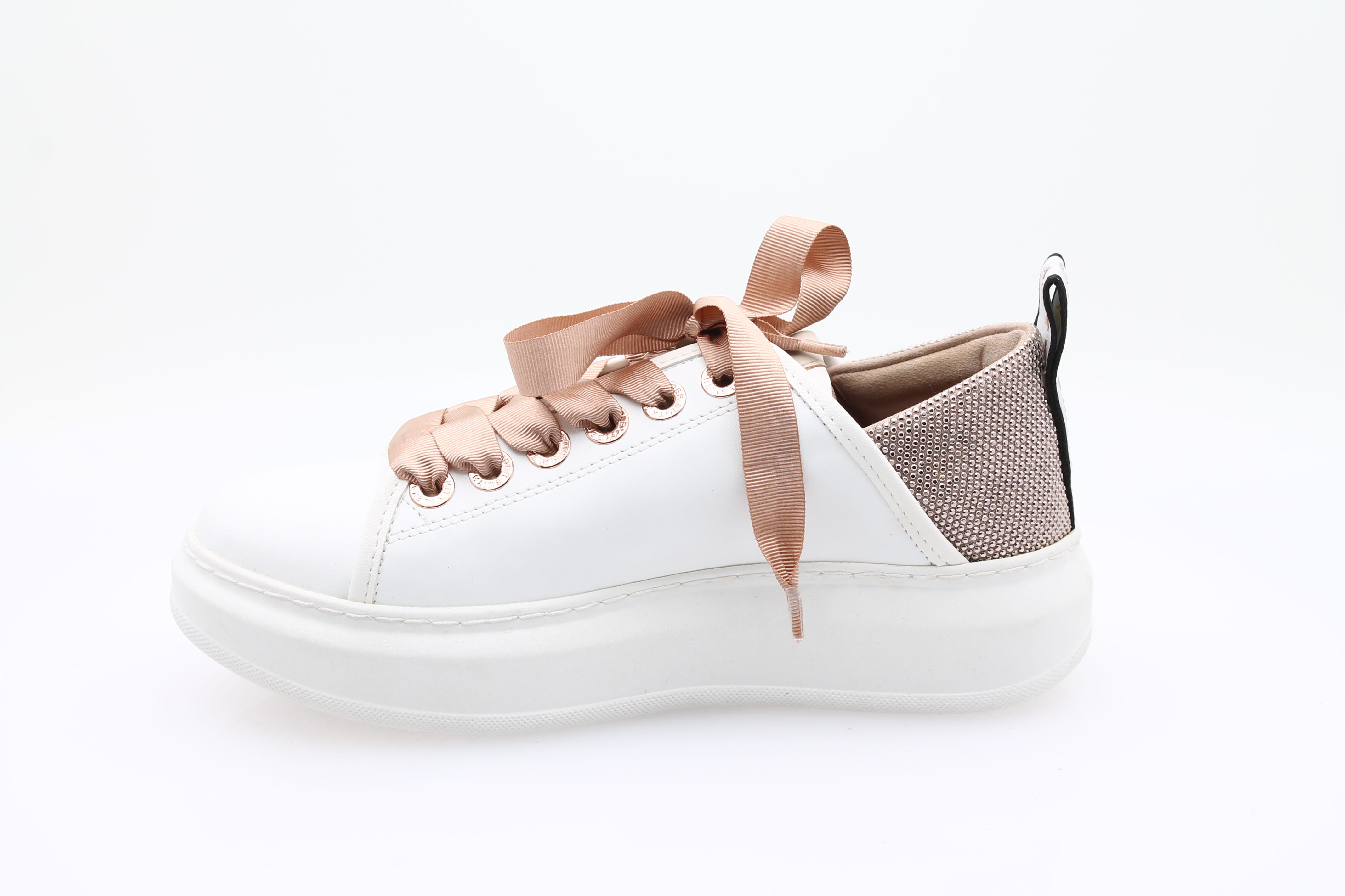En blanc et rose, elles sont parfaites pour toutes les occasions, avec des pailettes scintillantes sur le talon pour une touche de glam.