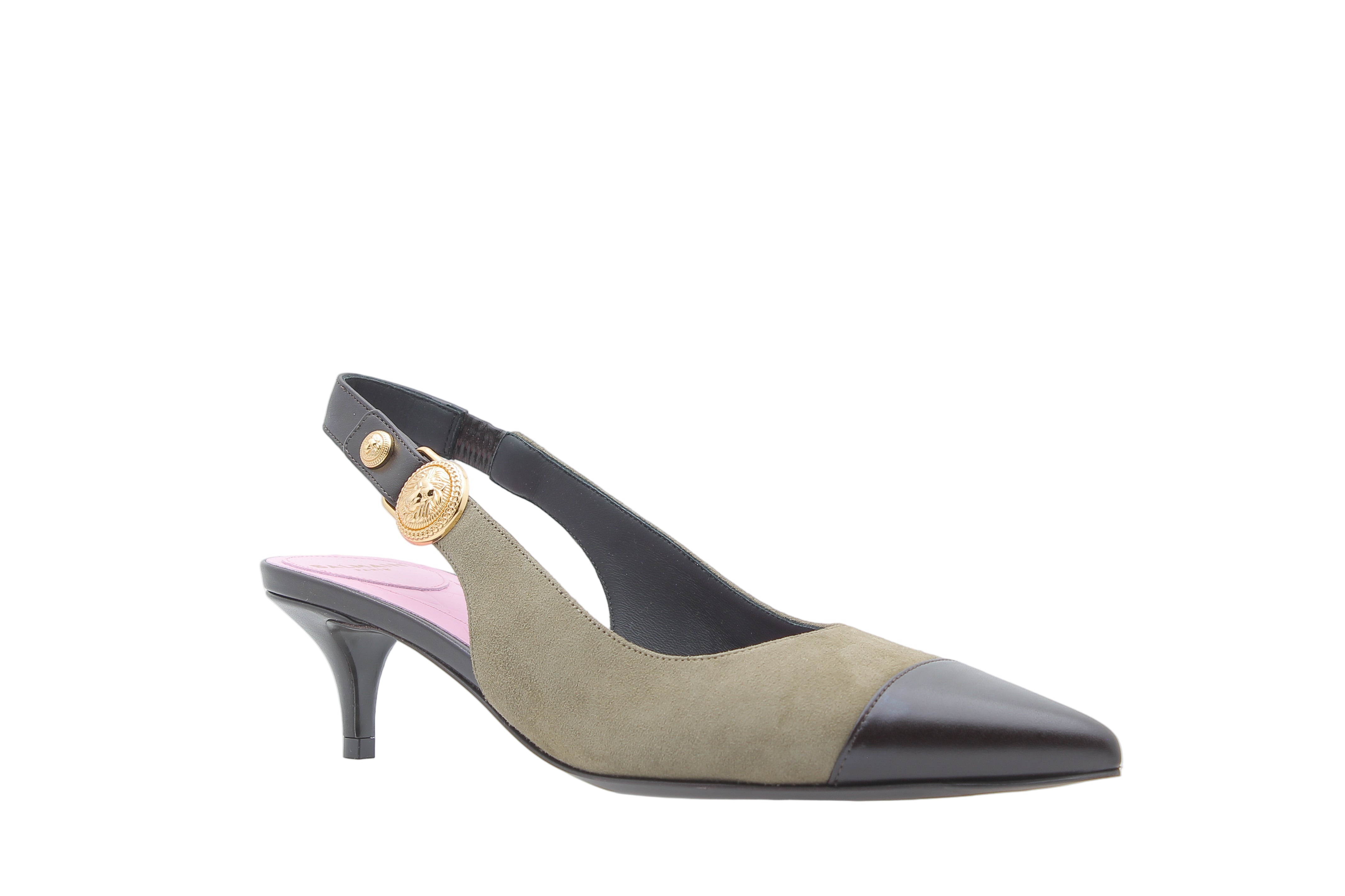Le modèle Eva Kitten Slingback de BALMAIN incarne l'élégance discrète et le raffinement à la française. Conçu en cuir de haute qualité, ce soulier kaki à bride arrière révèle un style sophistiqué sans compromis sur le confort. Grâce à son talon aiguille de 5 cm, il offre une allure élancée tout en assurant une marche stable et agréable tout au long de la journée.