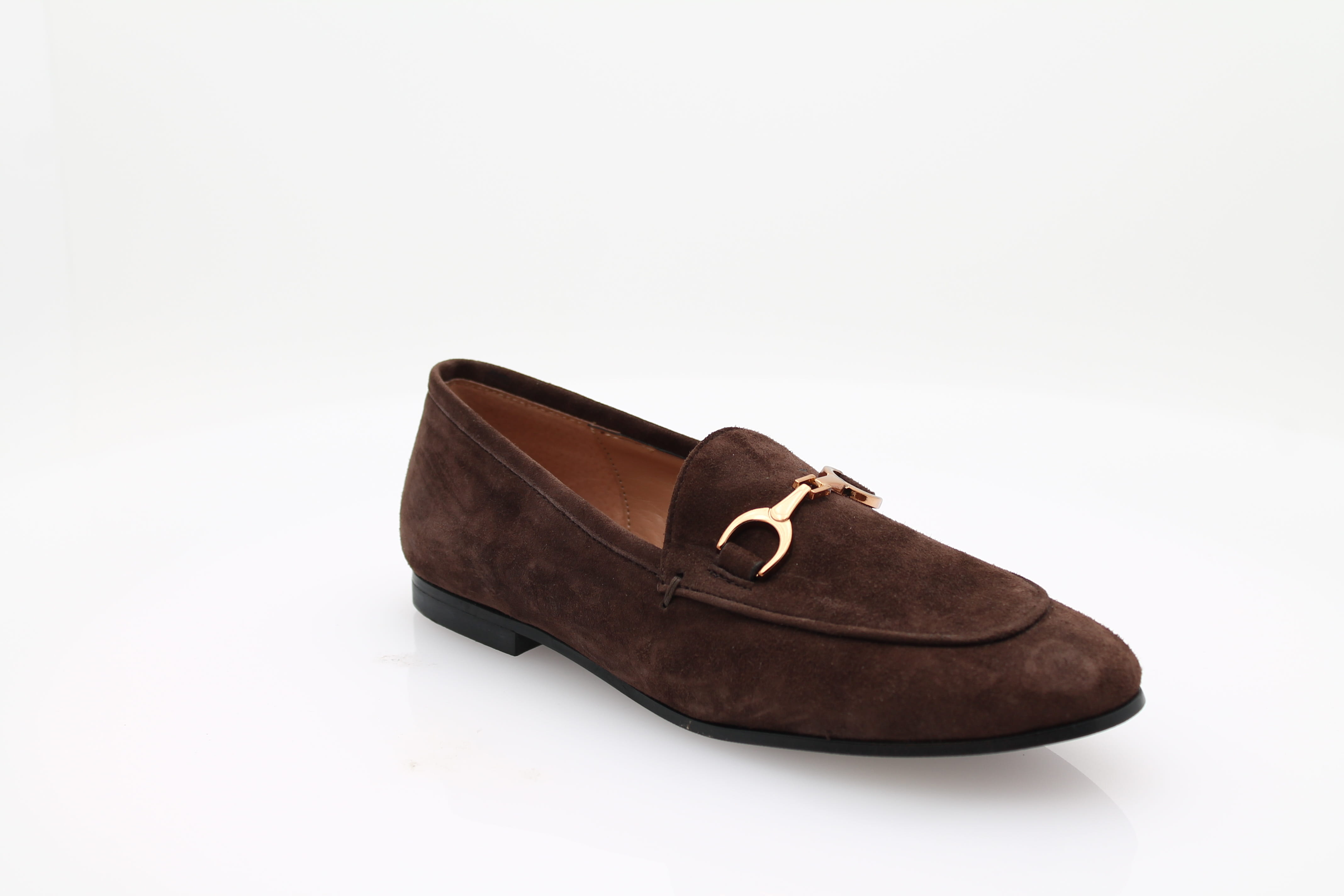 Les mocassins BIANCA DI en daim brun, fabriqués en Italie, allient élégance et confort.
