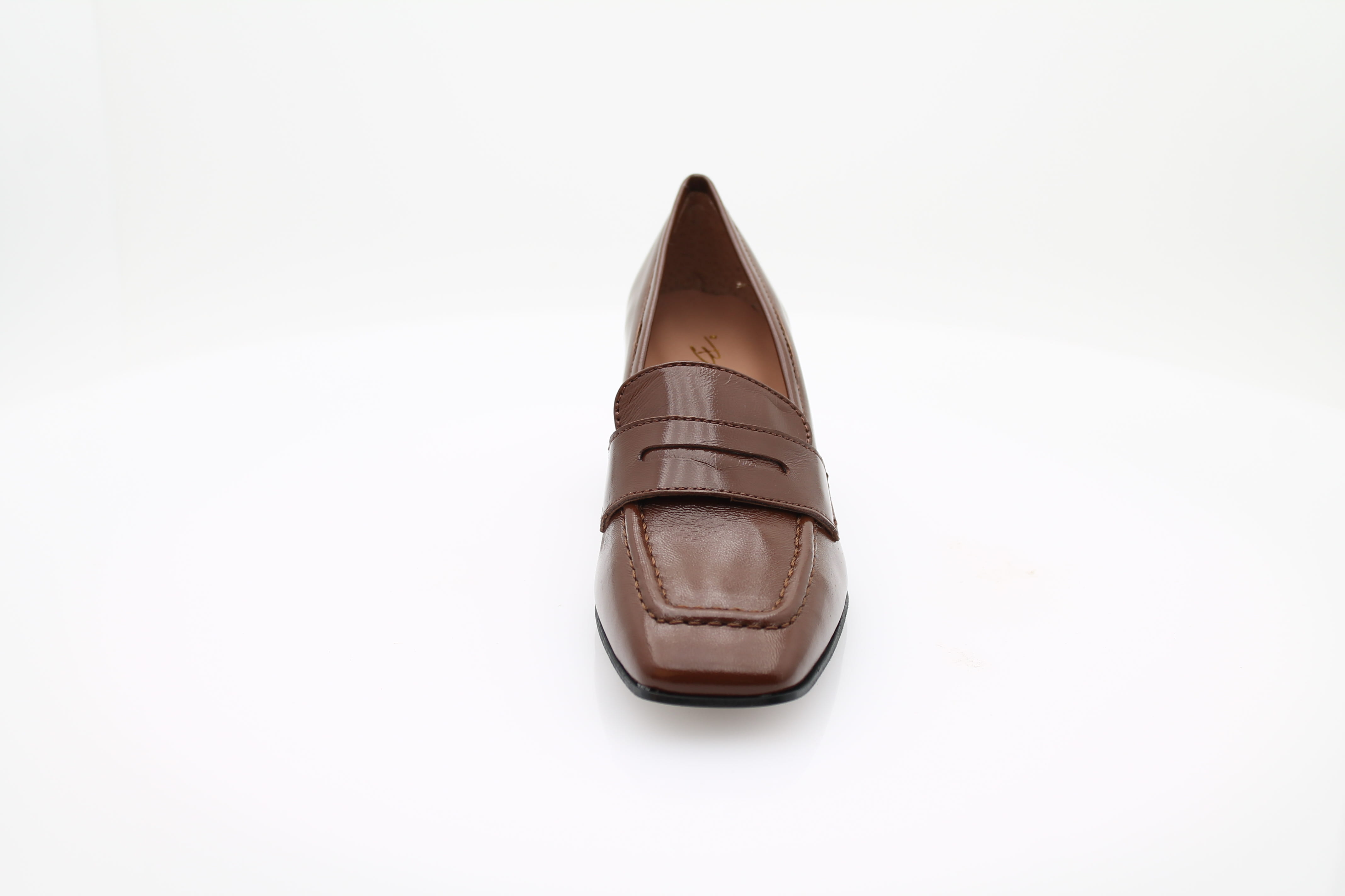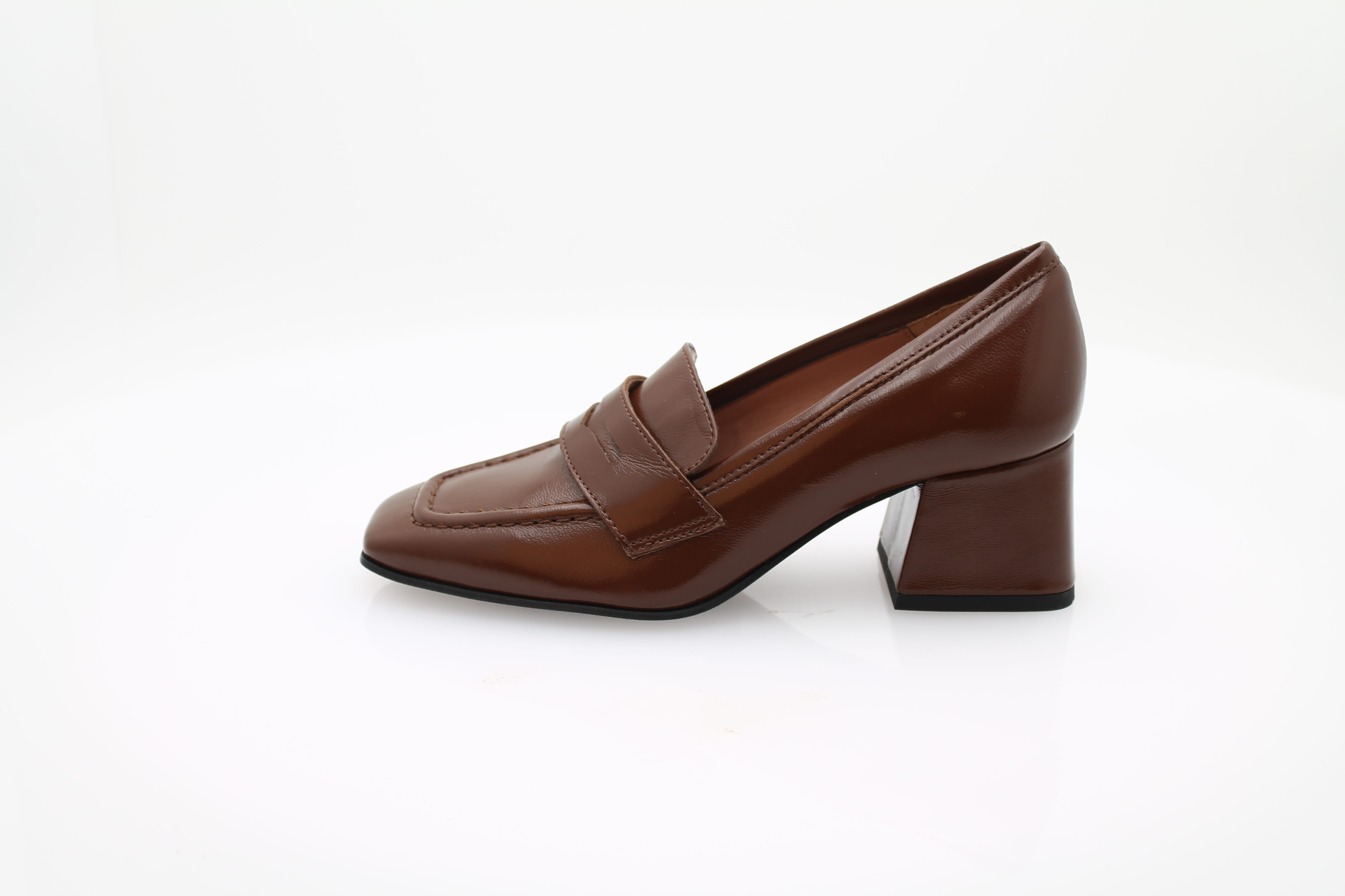 Apportez une touche d’élégance à votre tenue avec ces mocassins en cuir verni brun.