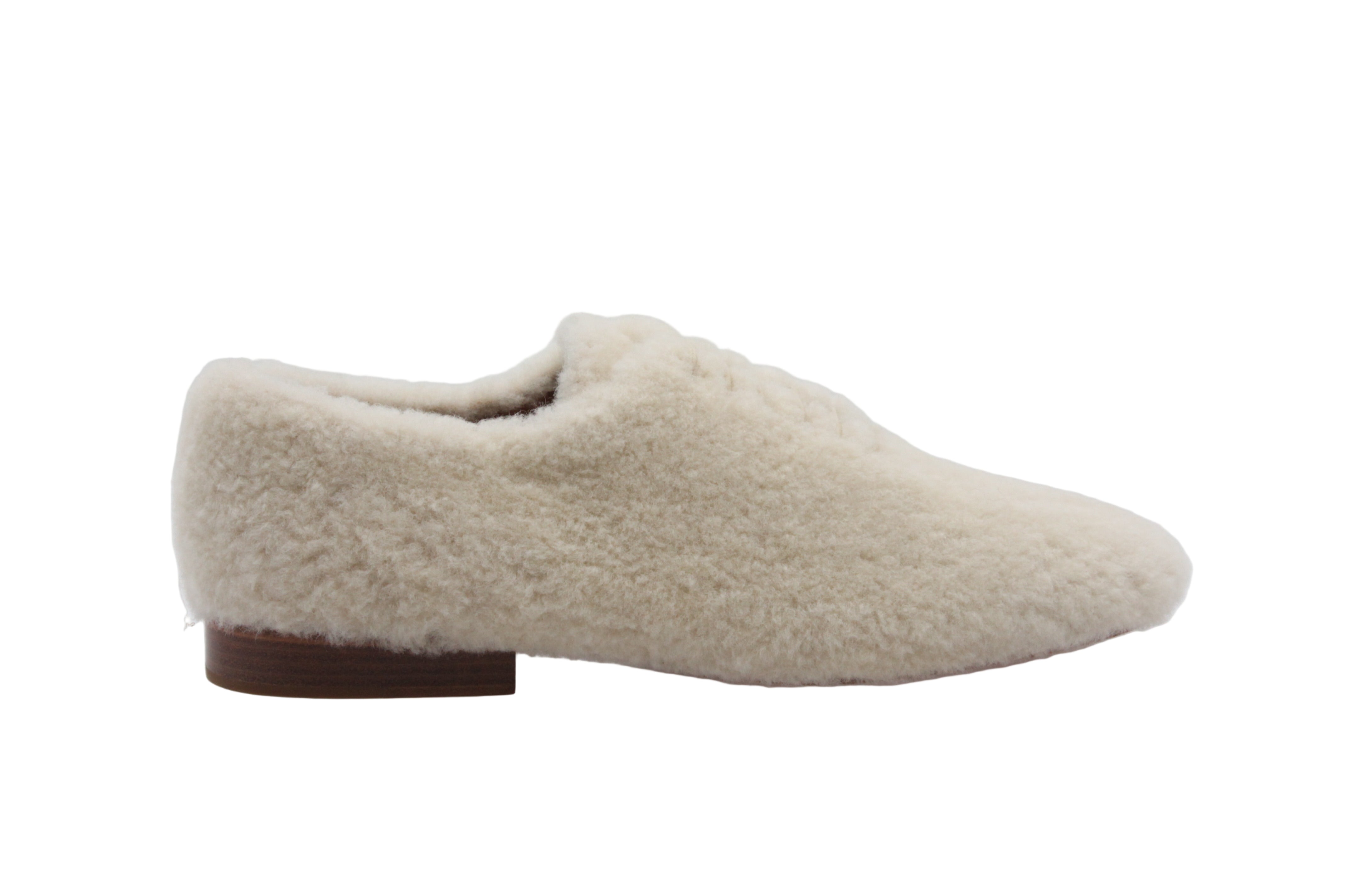 La Jessie Richelieu Blanc cassé de Chloé est une réinterprétation délicate et contemporaine d’un classique de la chaussure féminine. Avec son revêtement textile à effet laine de mouton, elle propose une allure douce et texturée qui attire immédiatement le regard. Ce modèle séduit par son style à la fois épuré et original, sa teinte blanc cassé subtile, et son esprit à mi-chemin entre confort cocooning et raffinement parisien. Les lacets fins, élégamment posés, renforcent le caractère intemporel de ce soulier revisité avec élégance.