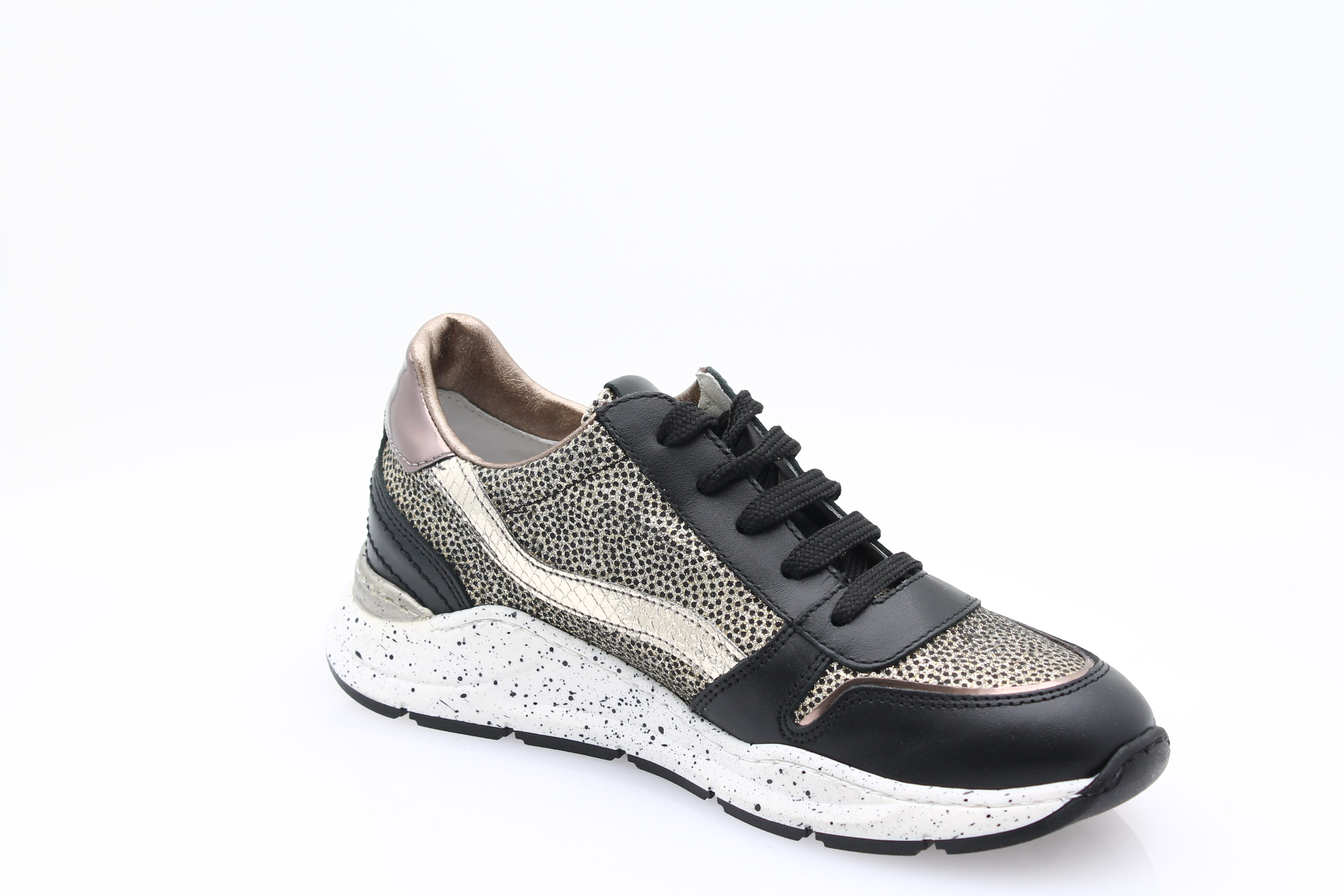Ces baskets noires et dorées sont légèrement pailletées avec un motif étoile sur le coté. Les lacets ajoutent une touche de style et assurent un maintien parfait pour votre enfant.