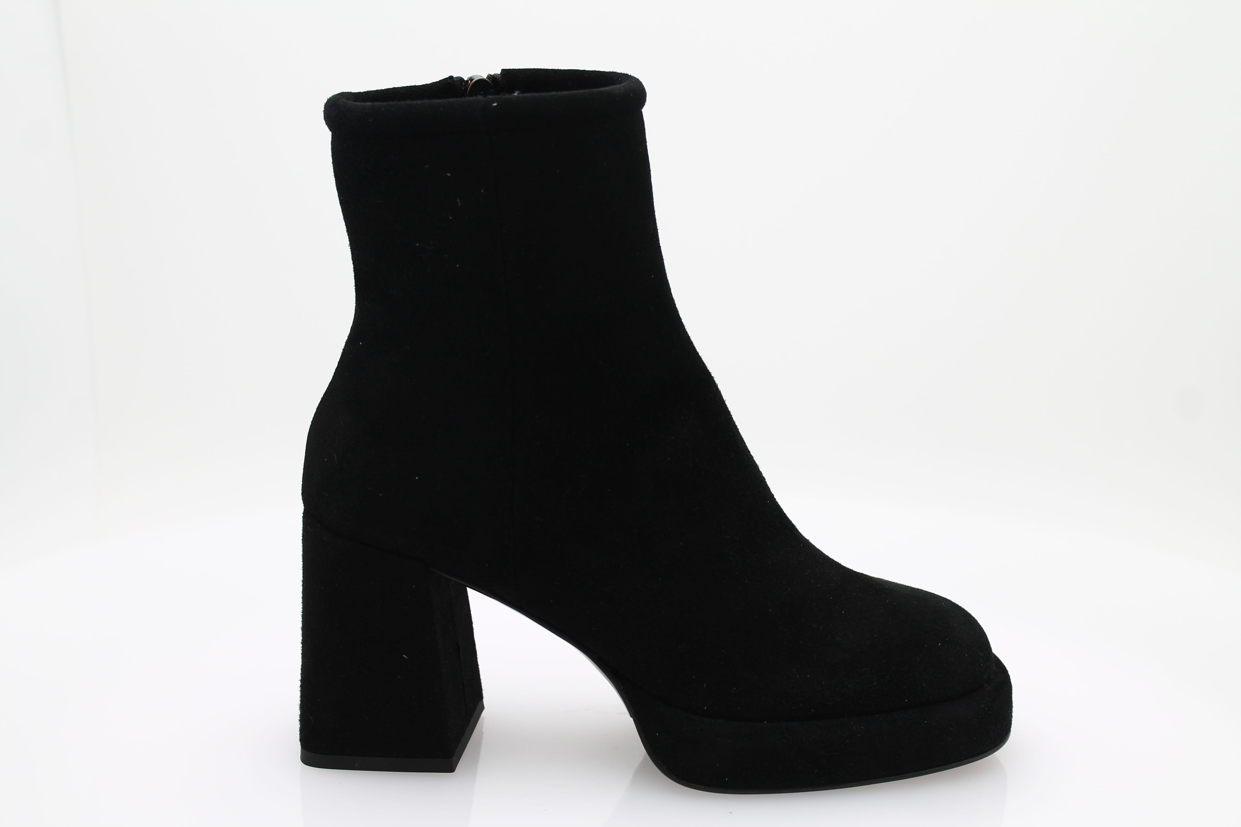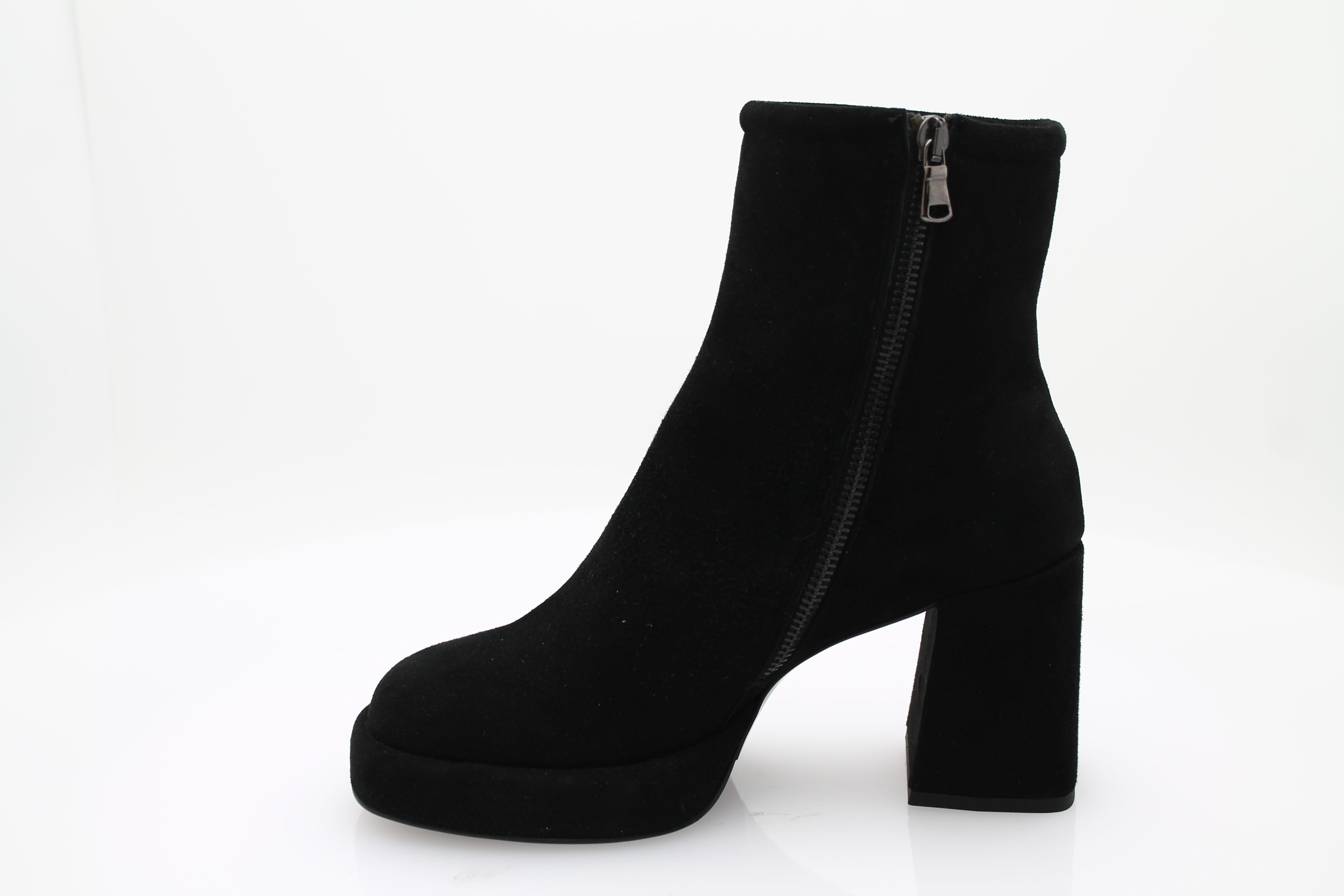 Les bottines ENZO DI MARTINO en suède noir, fabriquées en Italie, offrent une élégance sophistiquée.