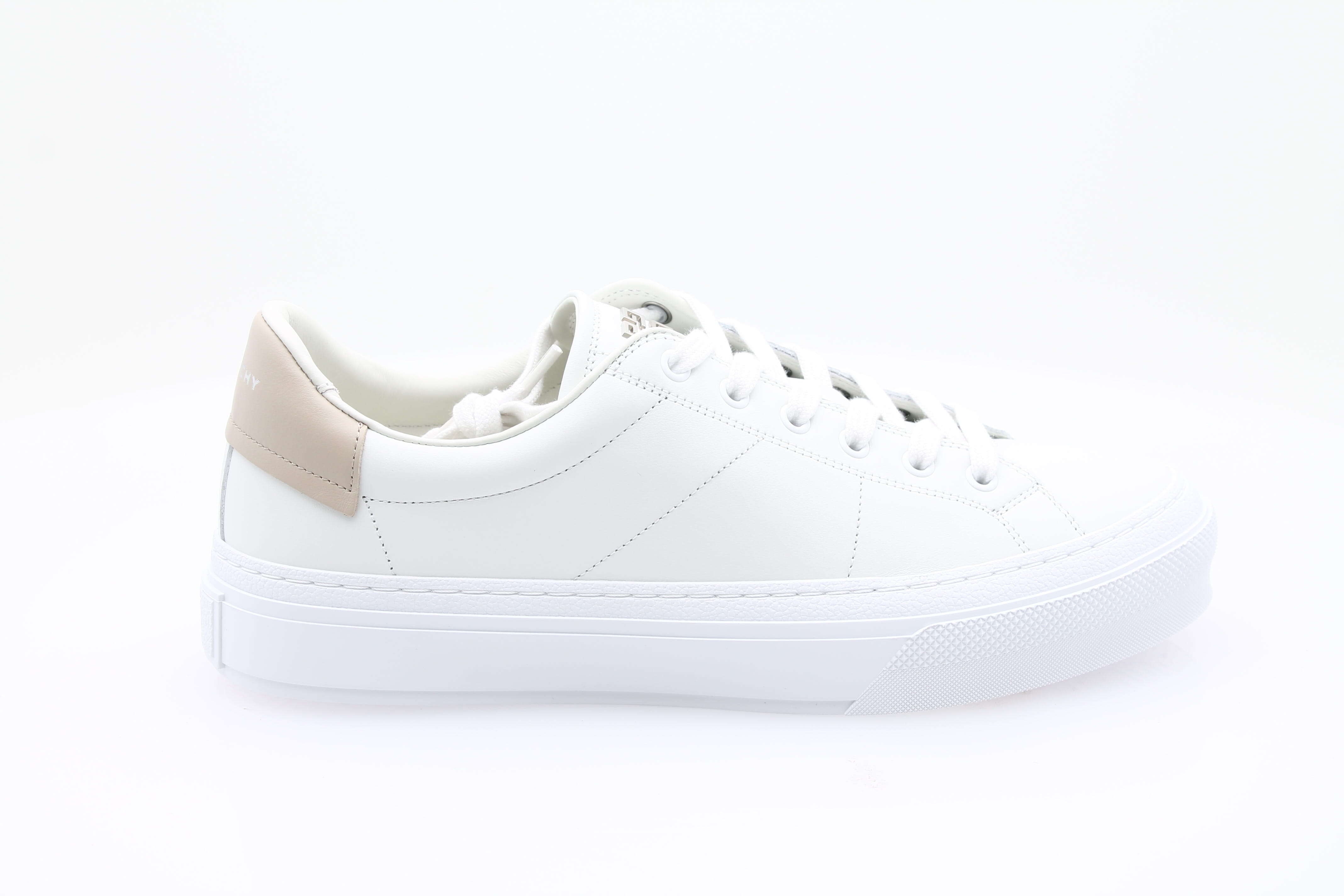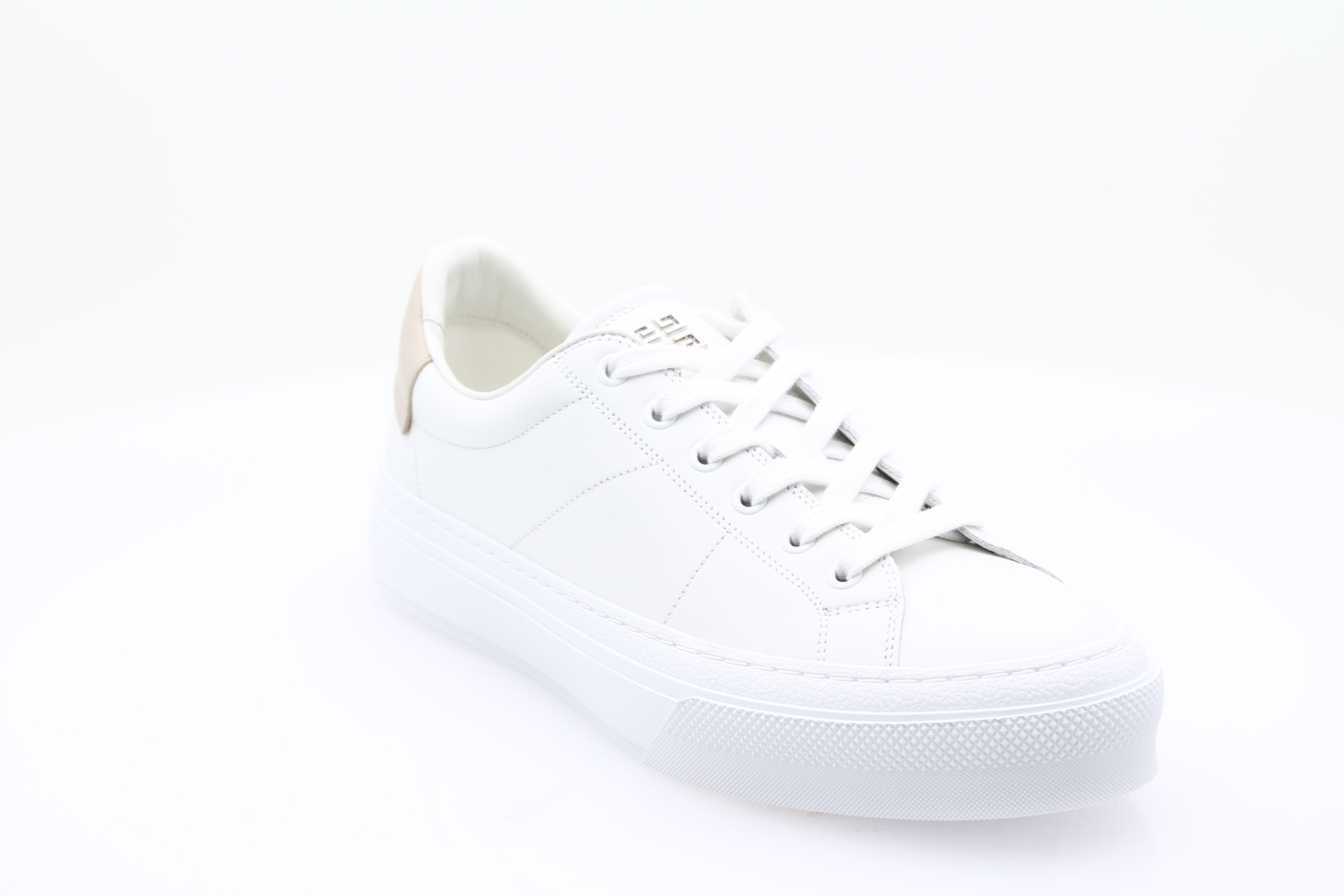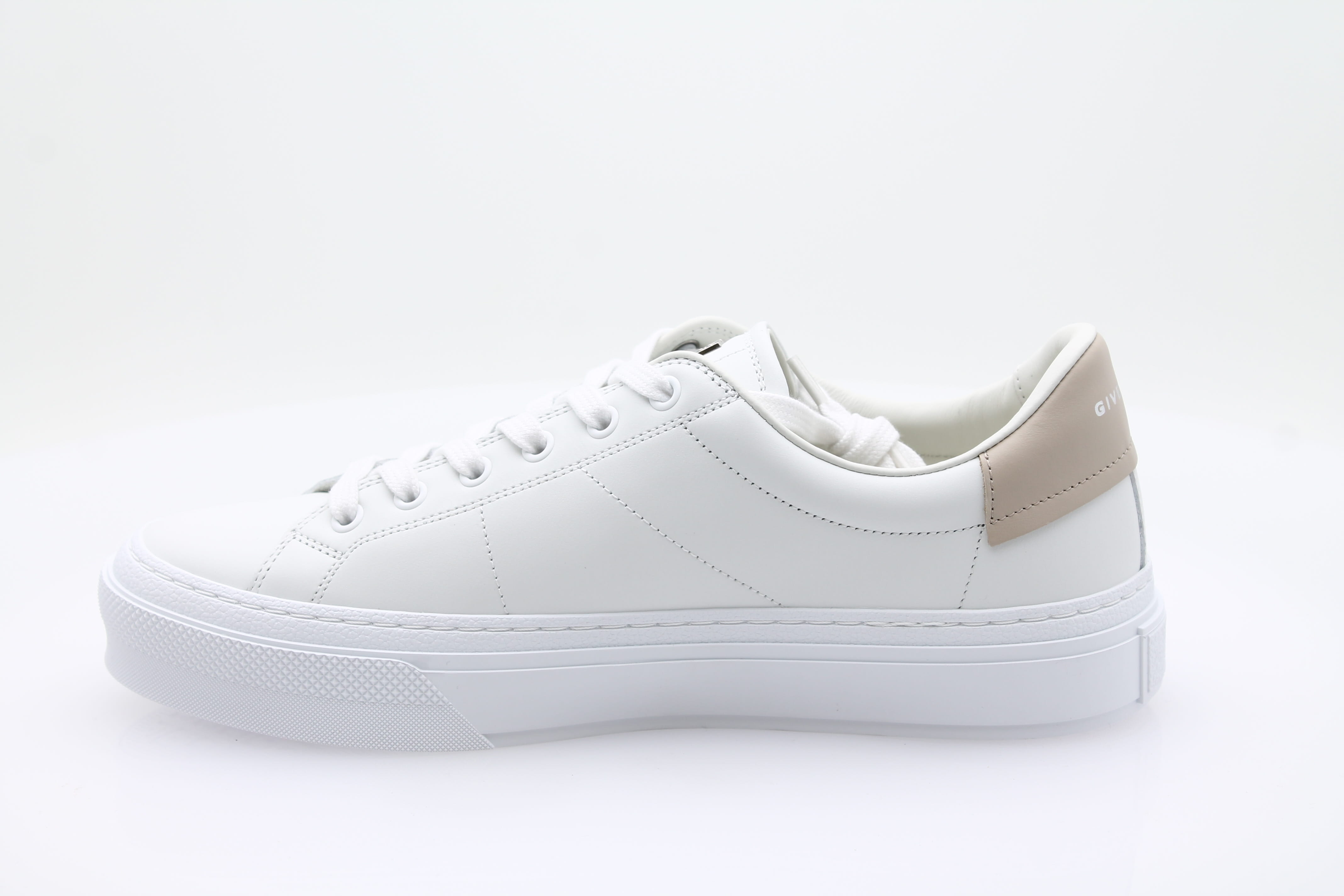 Le design blanc avec détail beige apporte une touche de sophistication, tandis que les lacets assurent un maintien impeccable.