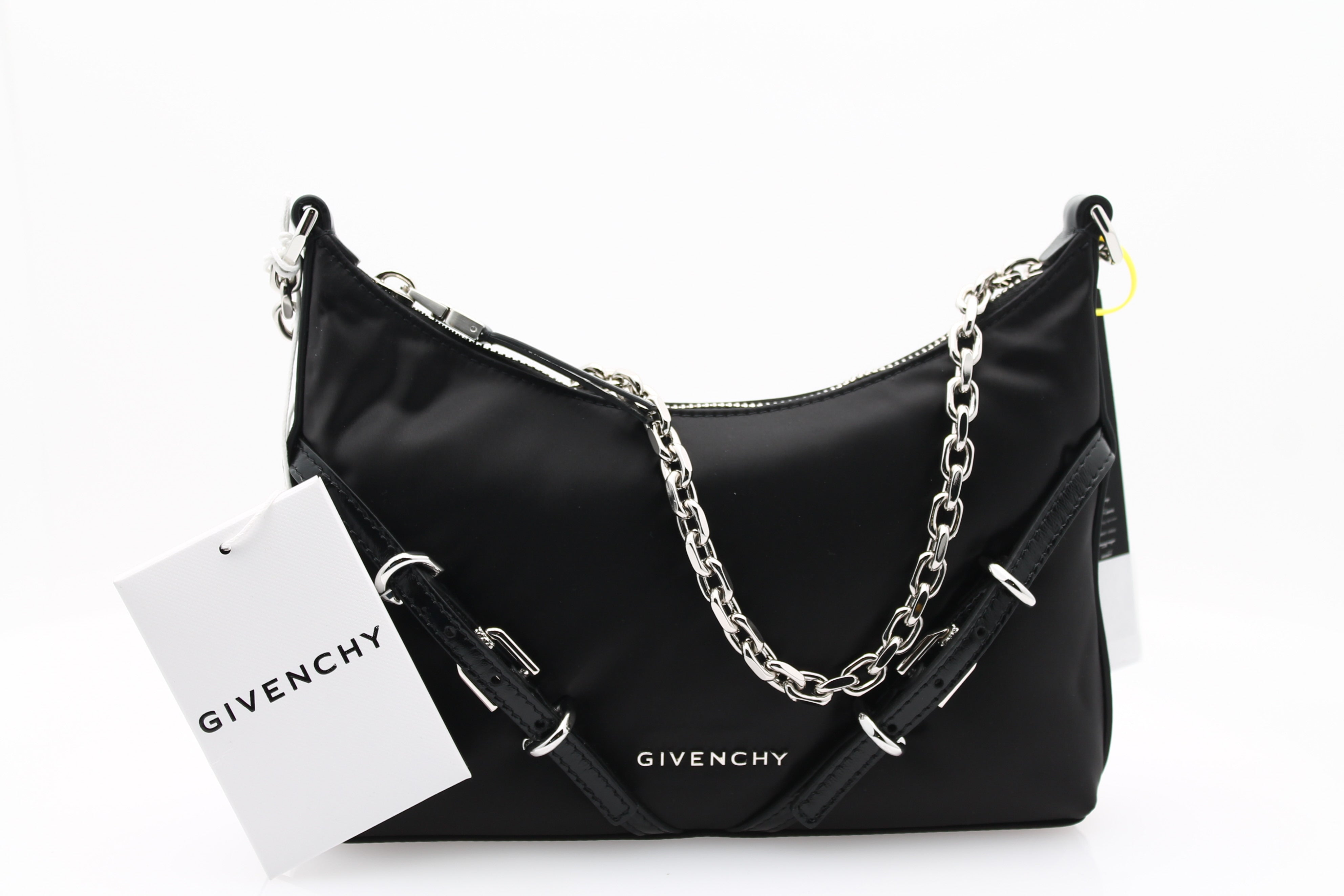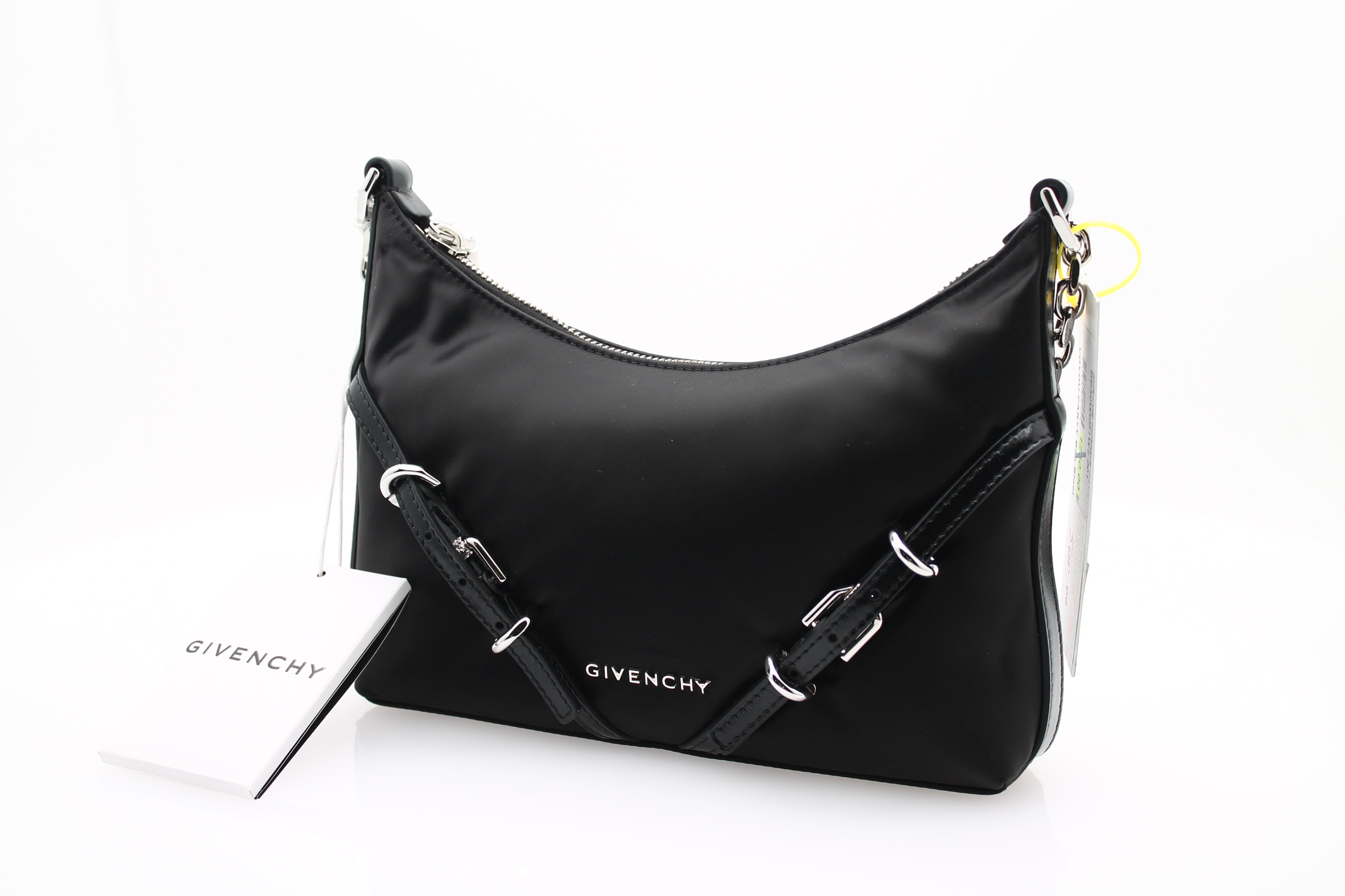 Le Givenchy Voyou Party Small Bag en noir incarne le luxe et l'élégance intemporelle de la maison Givenchy. Ce sac en cuir souple est un choix parfait pour celles et ceux qui recherchent un accessoire de mode raffiné et polyvalent. Grâce à sa finition soignée et à son design minimaliste mais audacieux, il se distingue parmi les sacs à main de luxe.