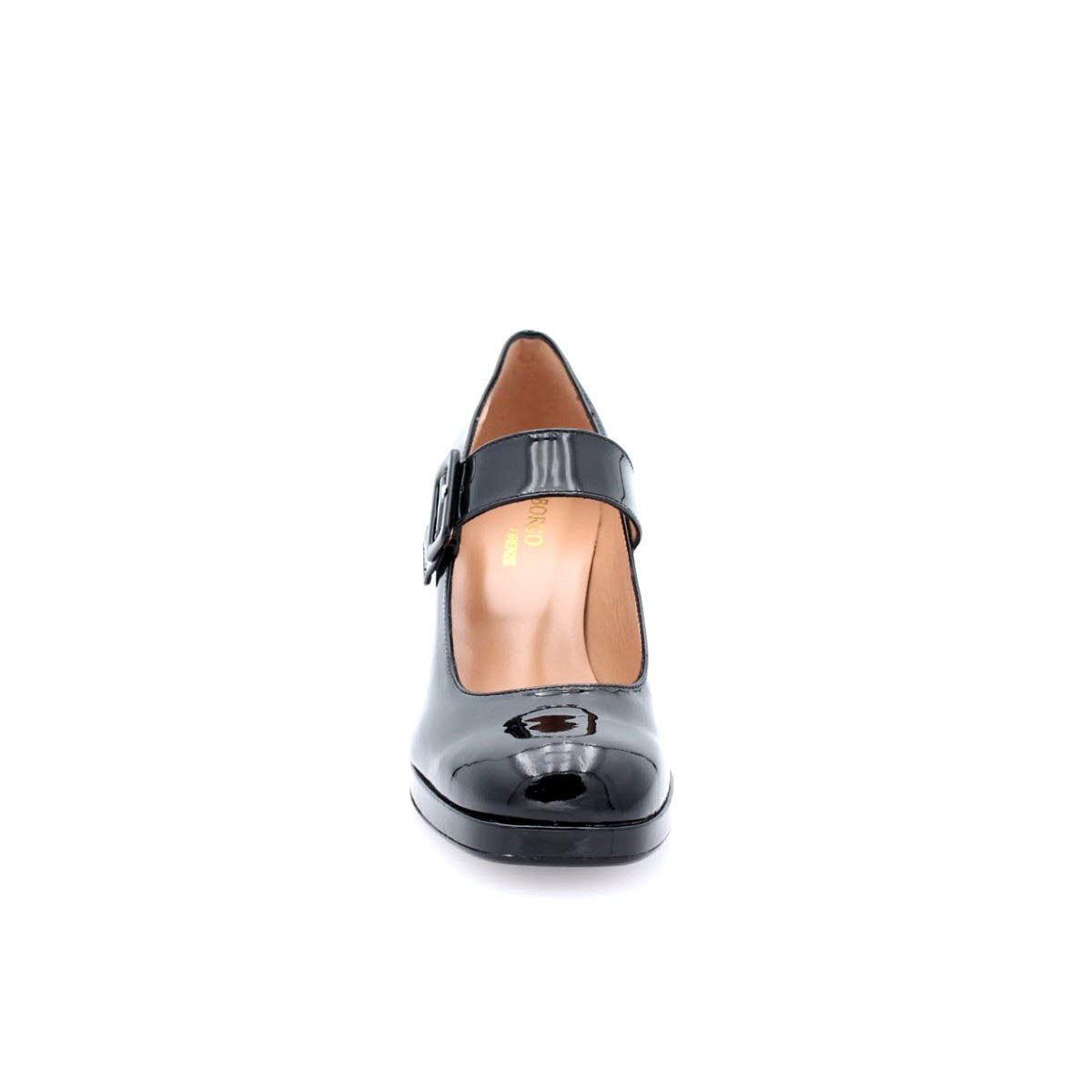 Faites ressortir votre style avec cette chaussure à talon en cuir verni noir.