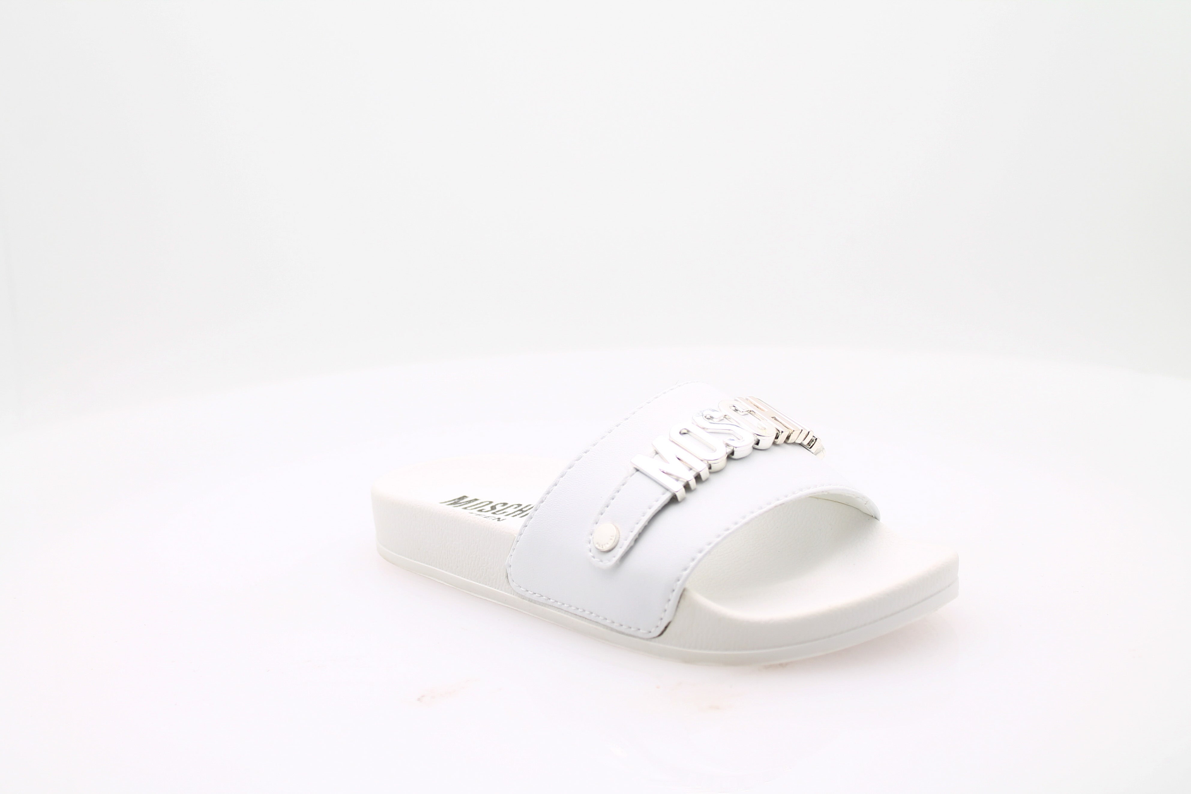 Les claquettes Moschino Sprint blanches incarnent parfaitement l’alliance entre simplicité et style. Leur structure en caoutchouc assure une allure moderne et décontractée, idéale pour compléter une tenue estivale. La bride ornée du logo Moschino argenté apporte une touche distinctive et souligne l’identité prestigieuse de la marque. Avec leur silhouette épurée et leur finition haut de gamme, elles s’imposent comme un choix élégant et polyvalent.