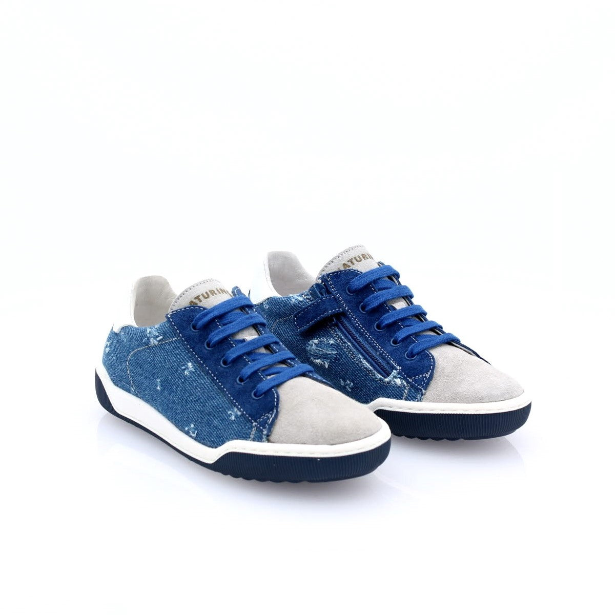 Partez à l'aventure avec les baskets basses en textile et suède NATURINO Willy pour garçon ! Avec leur savant mélange de matières et de couleurs, ces sneakers sont à la fois tendances et fonctionnelles. Le denim déchiré et les empiècements en daim ajoutent une touche de style, tandis que les lacets et la fermeture éclair sur le côté assurent un maintien optimal. La semelle intérieure et la doublure en cuir garantissent un confort optimal, et la semelle en caoutchouc antidérapante vous permettra de conquérir tous les terrains !