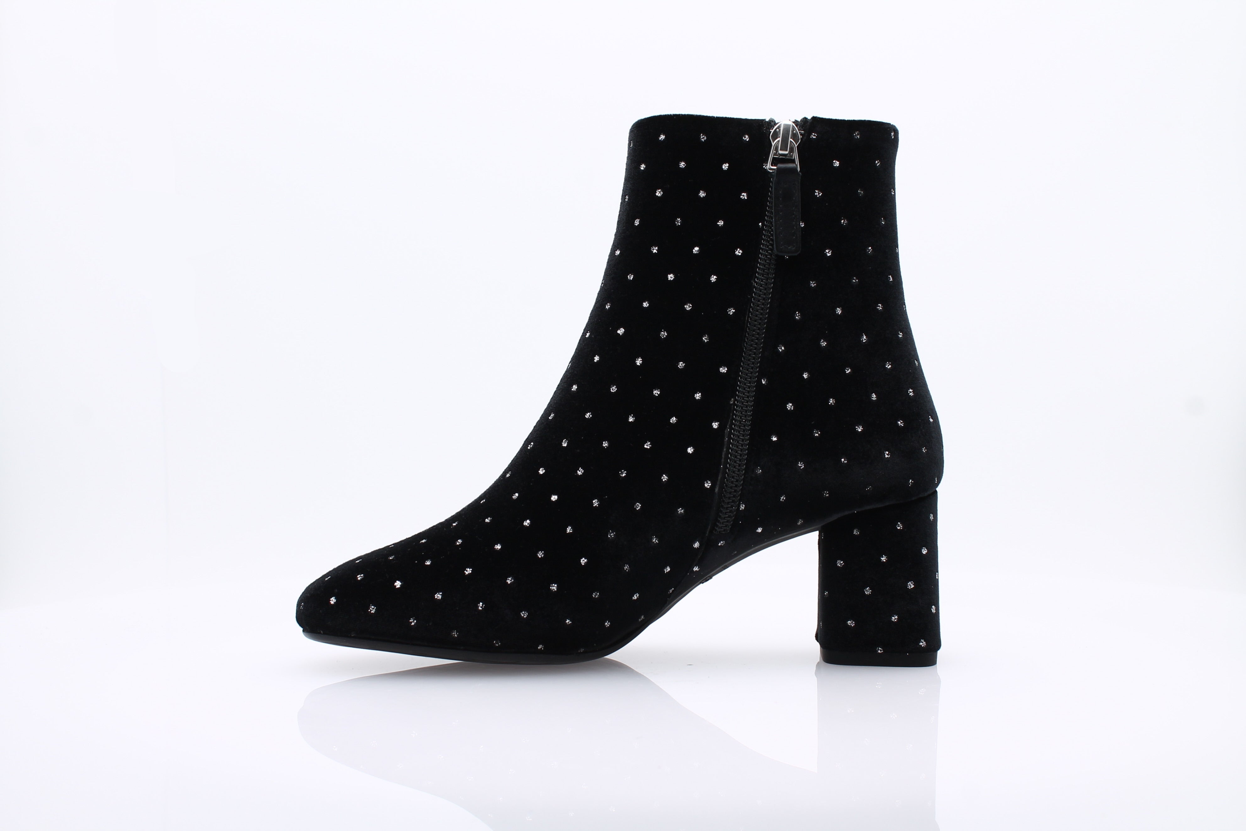 Son style intemporel, rehaussé par des paillettes discrètes et un talon stable, en fait un indispensable pour illuminer vos tenues. Parfaite avec un jean slim, une jupe midi ou une robe plus habillée, cette bottine est la pièce maîtresse pour briller avec élégance et confort.