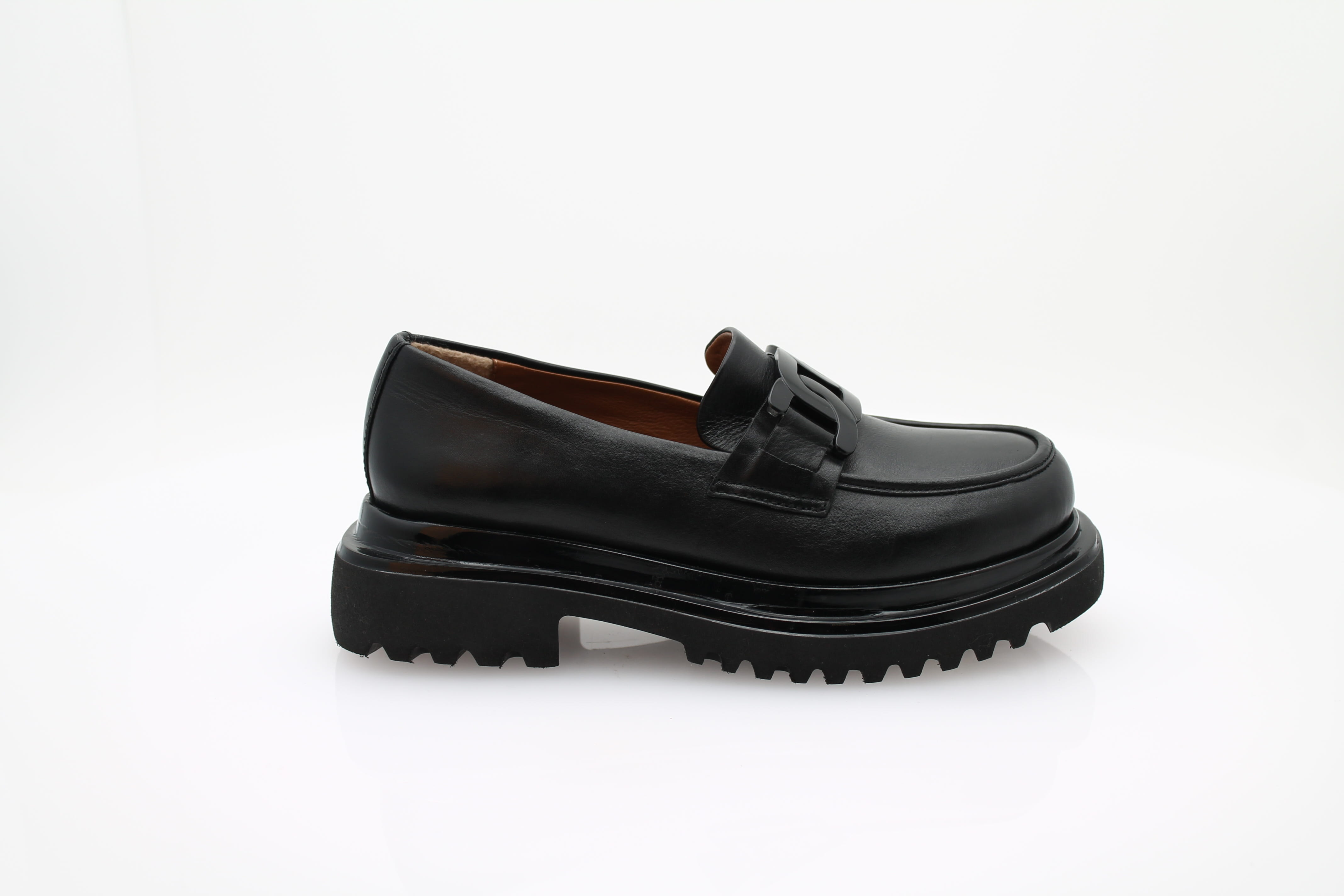 Affirmez votre style avec ces derbies chunky en cuir verni noir.