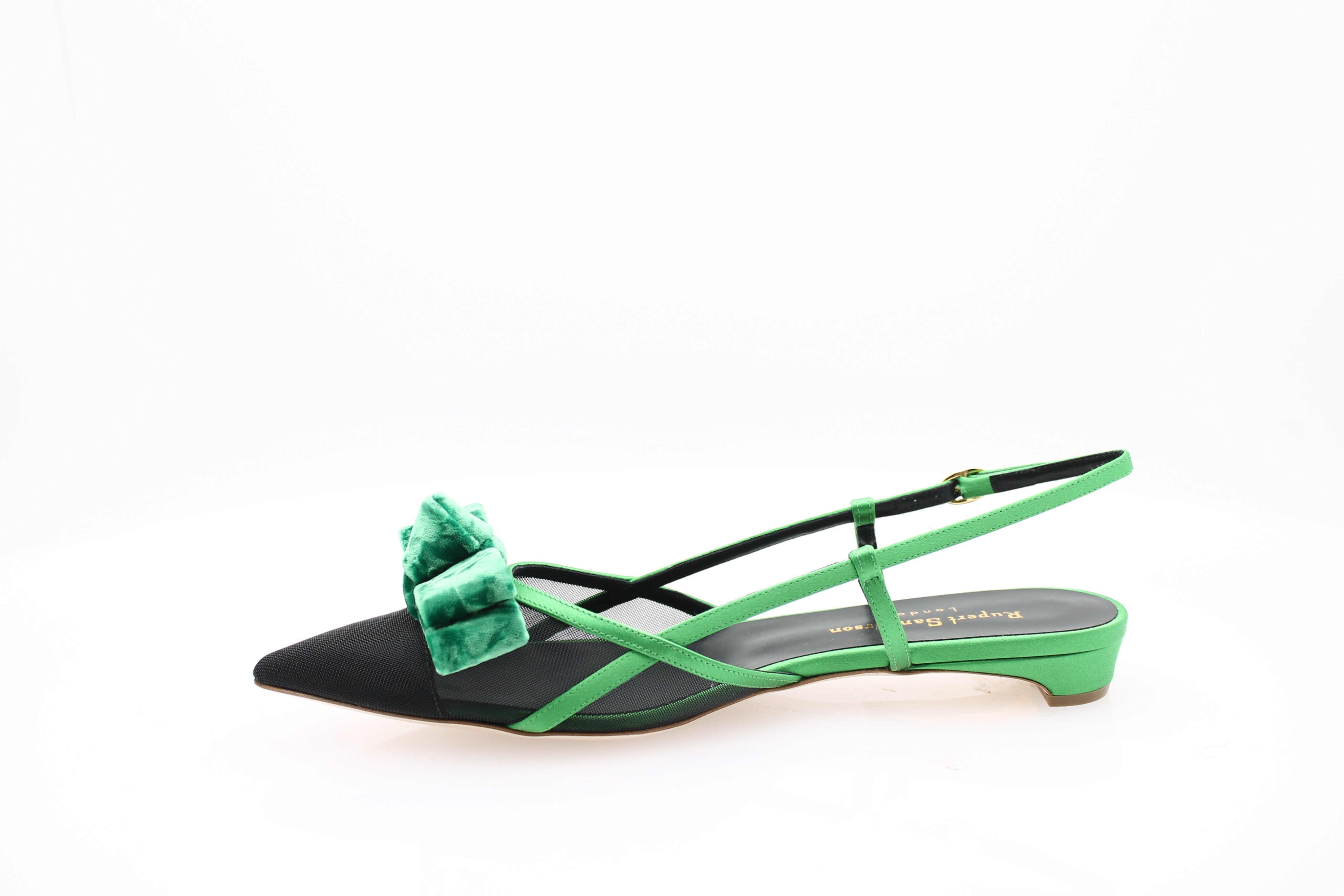 La Fay 05 Sling Satin en vert émeraude de Rupert Anderson est une véritable déclaration de style. Cette sandale sling raffinée marie avec subtilité des matières nobles et un design résolument chic. Le satin vert lumineux est rehaussé d’un nœud délicat à l’avant, tandis que le mesh noir semi-transparent vient habiller le bout fermé et pointu de la chaussure. Ce contraste audacieux donne une allure sophistiquée et unique à chaque pas.