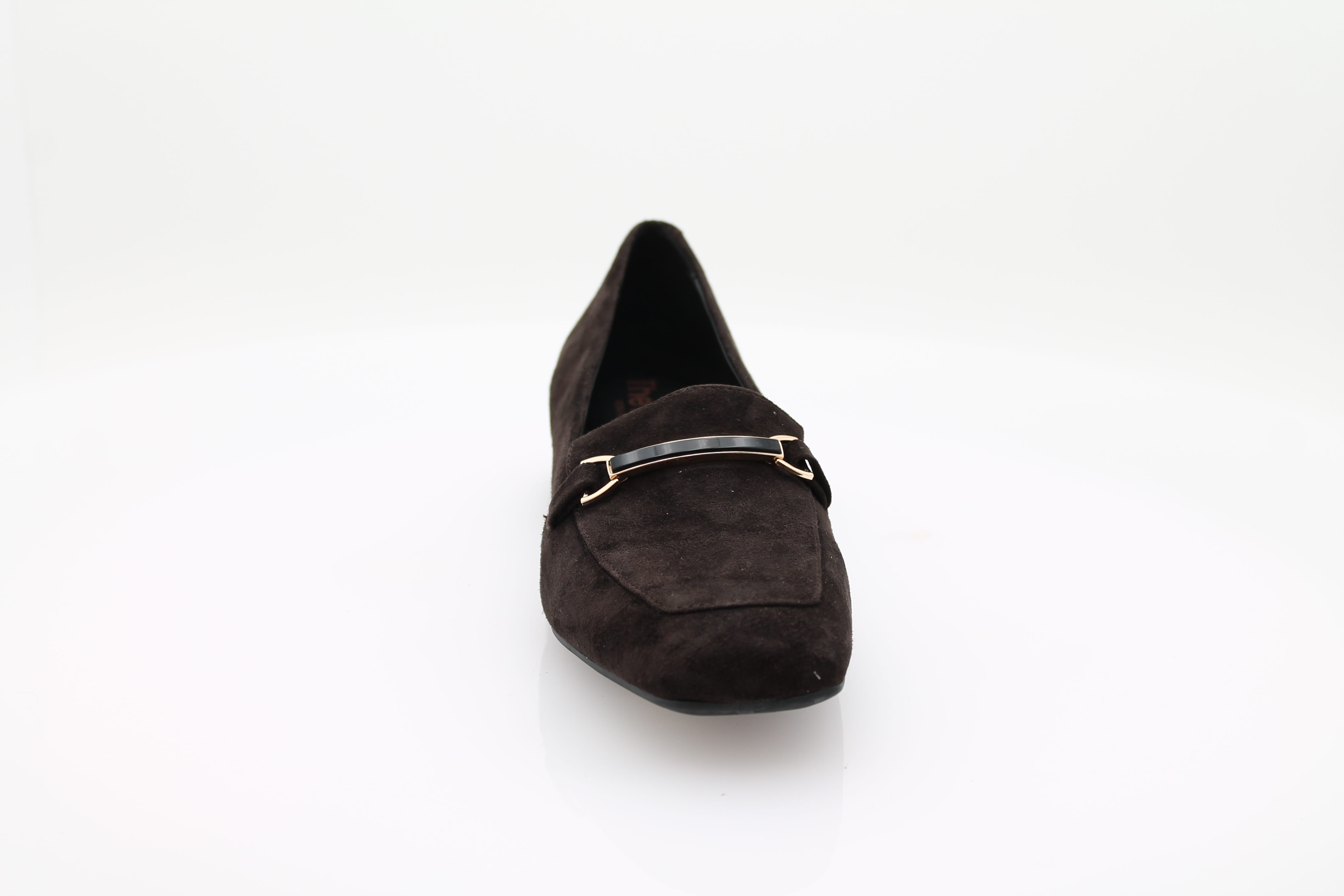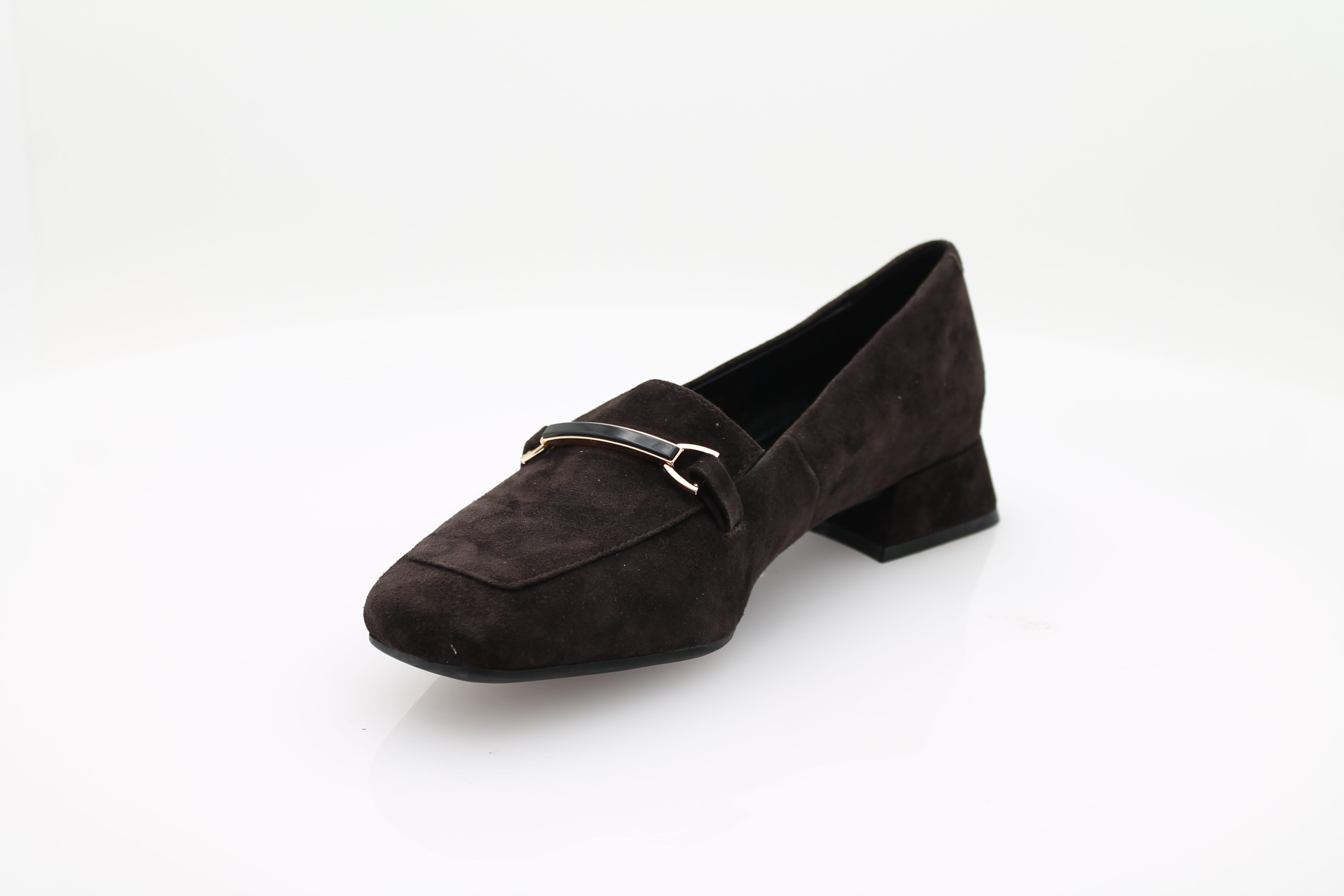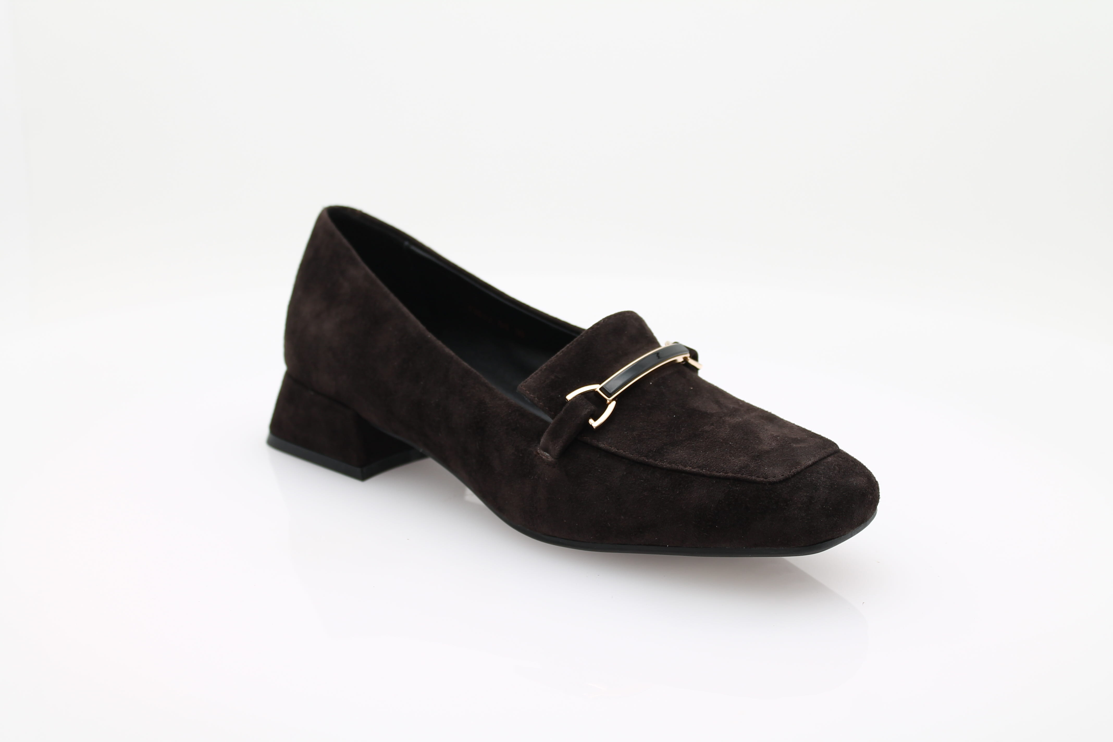 Les mocassins Larissa combinent élégance et confort avec leur design raffiné en daim et cuir de qualité. La couleur brun chaleureuse et le petit talon offrent une silhouette féminine et confortable, idéale pour une journée de travail ou une sortie décontractée. Le détail doré à l'avant ajoute une touche de sophistication et de luxe, rehaussant le modèle d'un éclat subtil.